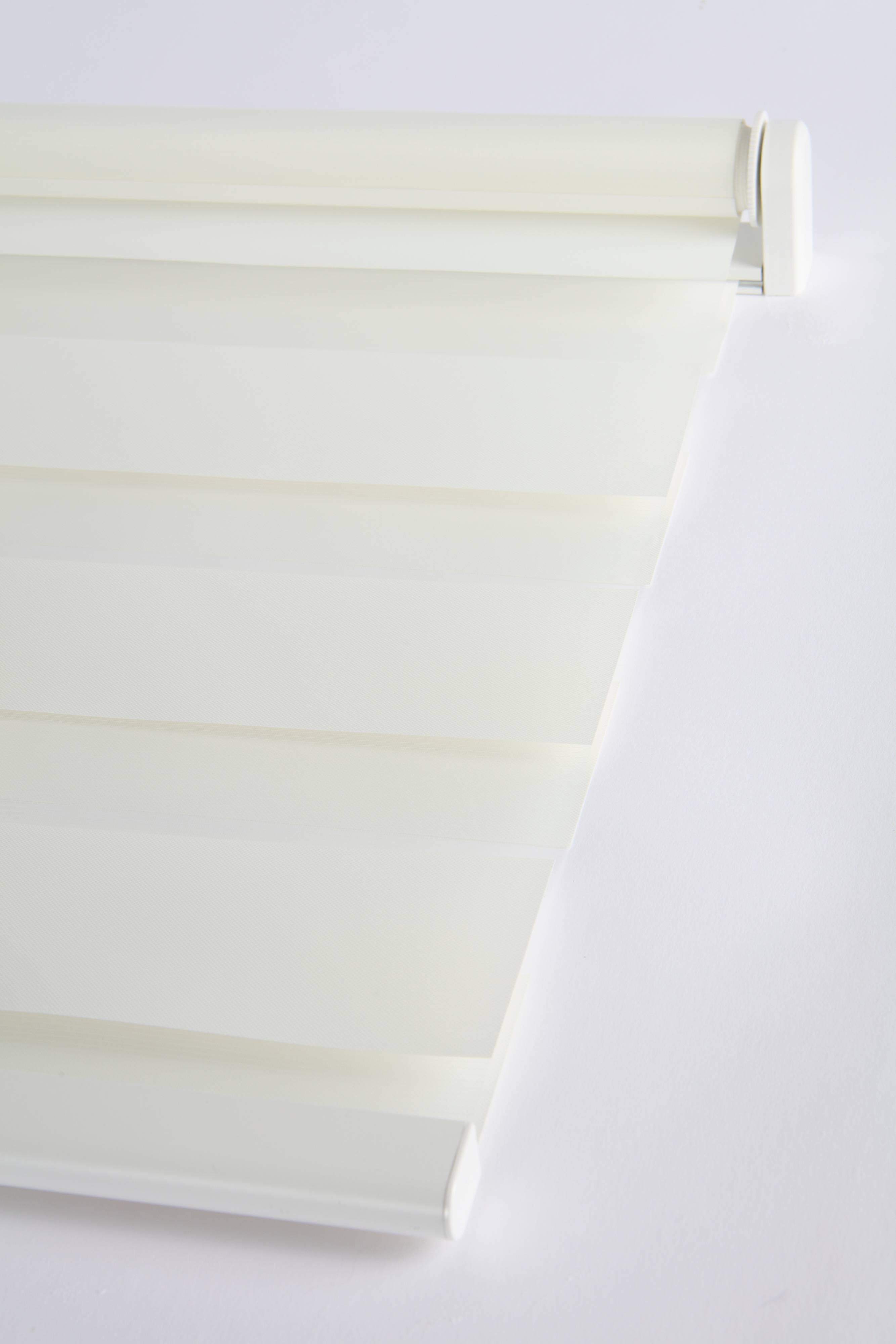 SOPHIE rullgardin har dubbla lager som minskar ljuset samtidigt som dagsljuset bibehålls, perfekt för vardagsrum, kök eller matsalar. Den är barnsäker och har inga lösa snören, kan monteras på vägg eller i tak och är enkel att installera.