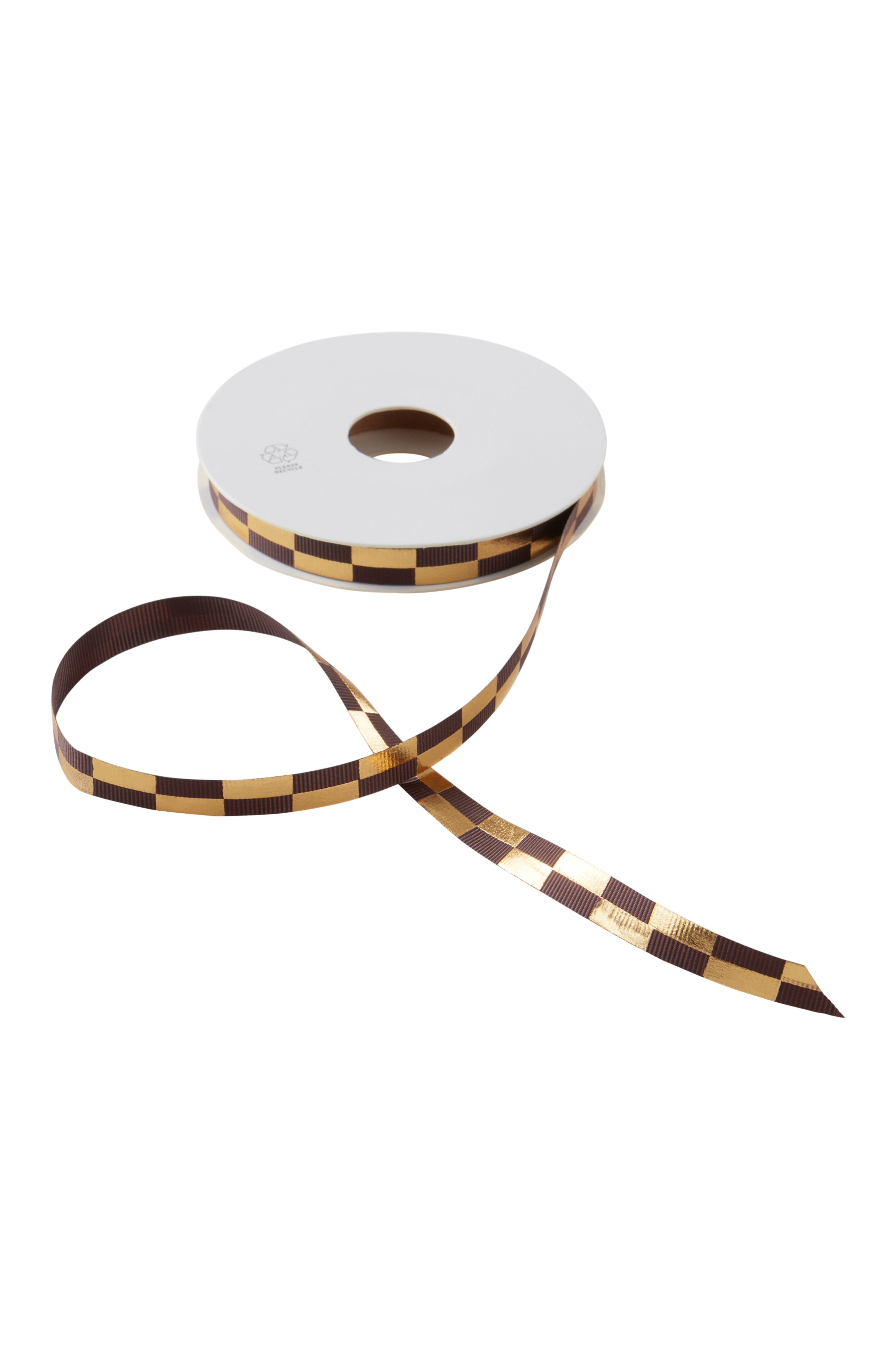 Rutigt dekorationsband av glansig satin. Bandet kan göra dina presenter och julklappar extra fina.