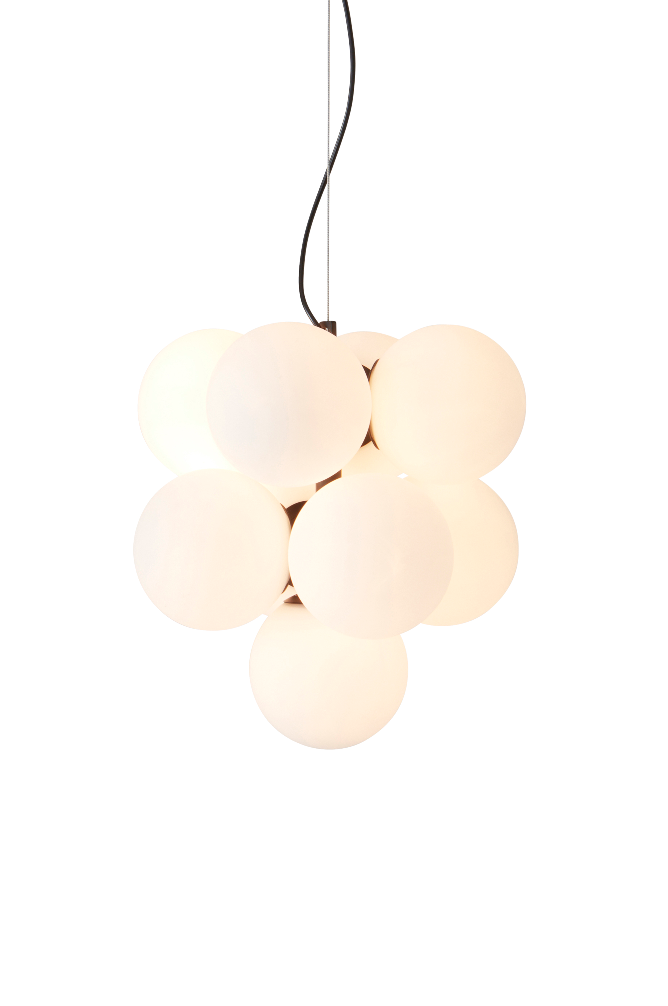 Taklampa av järn med nio ljuspunkter i frostat glas. TED är en stilren taklampa i en modern och avskalad design. Svart sladd, sladdlängd 1,1 m. Takplugg ingår ej p.g.a. nya EU-regler. Den finns att köpa separat och heter ROOF EARTH takplugg.