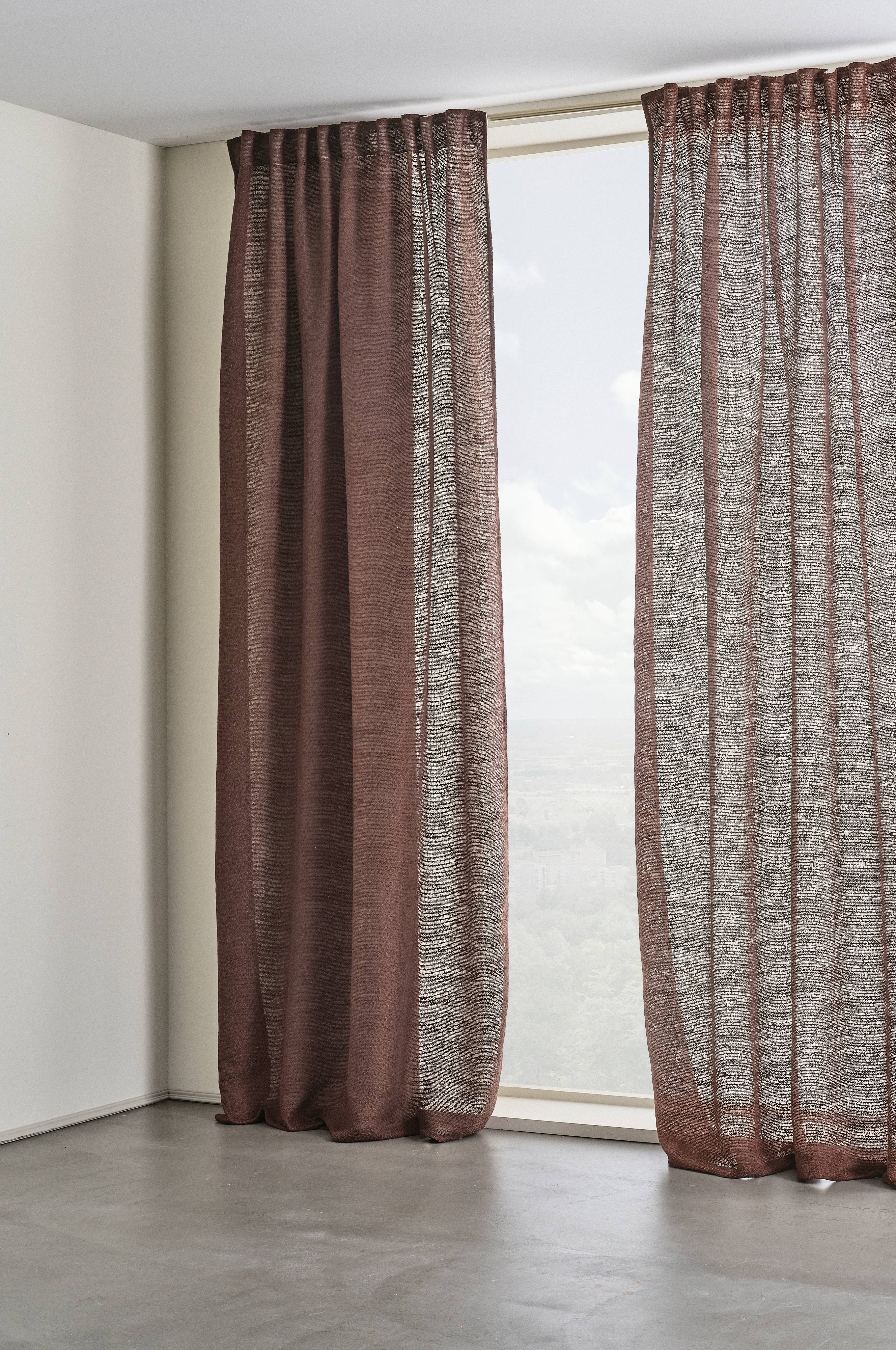 Två gardinlängder i ett vackert tyg där trådar i olika tjocklek och kvalité vävts så att ett livfullt mönster skapas. Gardinerna har ett klassiskt och fräscht uttryck och passar in i många olika stilar.