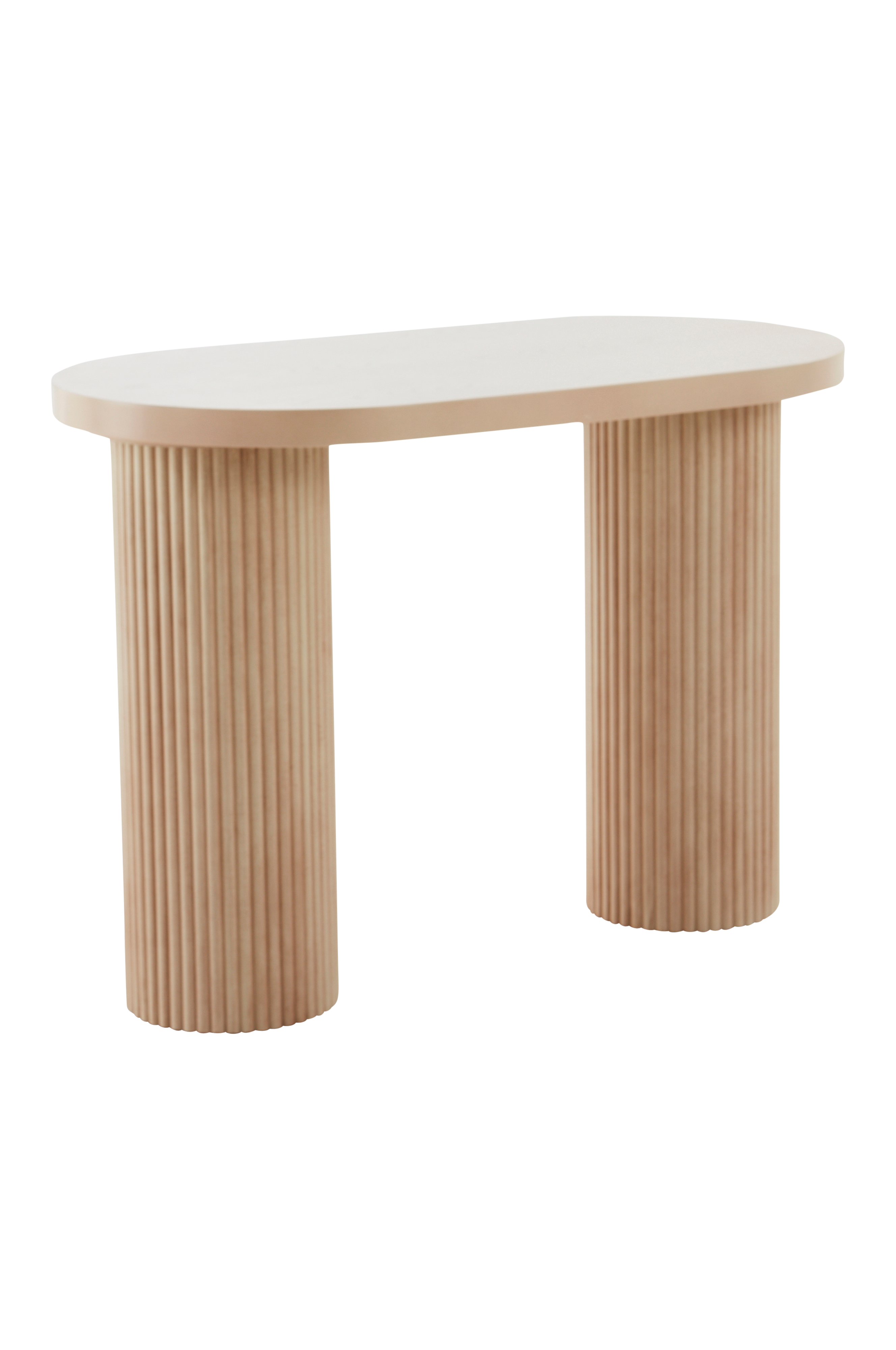 Skrivbord i behändig och gedigen modell. Skrivbordet är av MDF med faner av ask eller valnöt. Skrivbordet har ovalt formad bordsskiva som är kraftig och har fin ådring. De runda, omfångsrika benen har strukturränder som ger ett välarbetat intryck. Skrivbordet bör förankras i väggen, väggfäste medföljer. Skrivbordet är litet och lättplacerat, det passar lika bra som hemmakontor i vardagsrummet som till läxorna i barnrummet. Viss montering krävs. Monteringsanvisning medföljer.