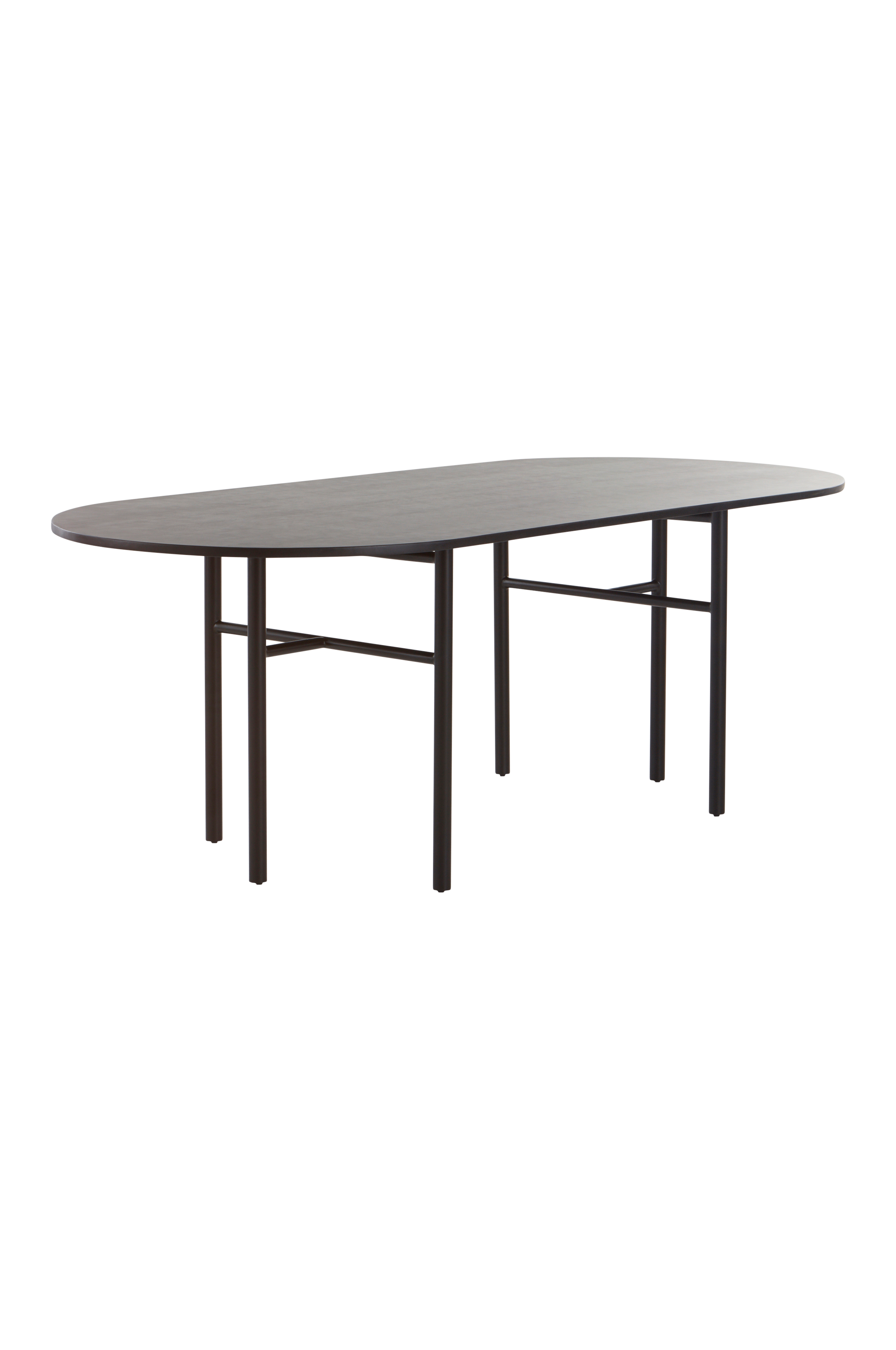 Ellipsformat matbord med bordsskiva av mangoträ och underrede av järn. Bordet har mattsvart finish, på både trä och metall. De smäckra benen ger bordet en lätt och luftig känsla som tillsammans med en rustik bordsskiva skapar perfekt harmoni. Ellipsformen ger behaglig sittning vid middagen där alla blir delaktiga i måltiden och du får samma gemenskap som vid ett runt bord. Viss montering krävs. Monteringsanvisning medföljer.