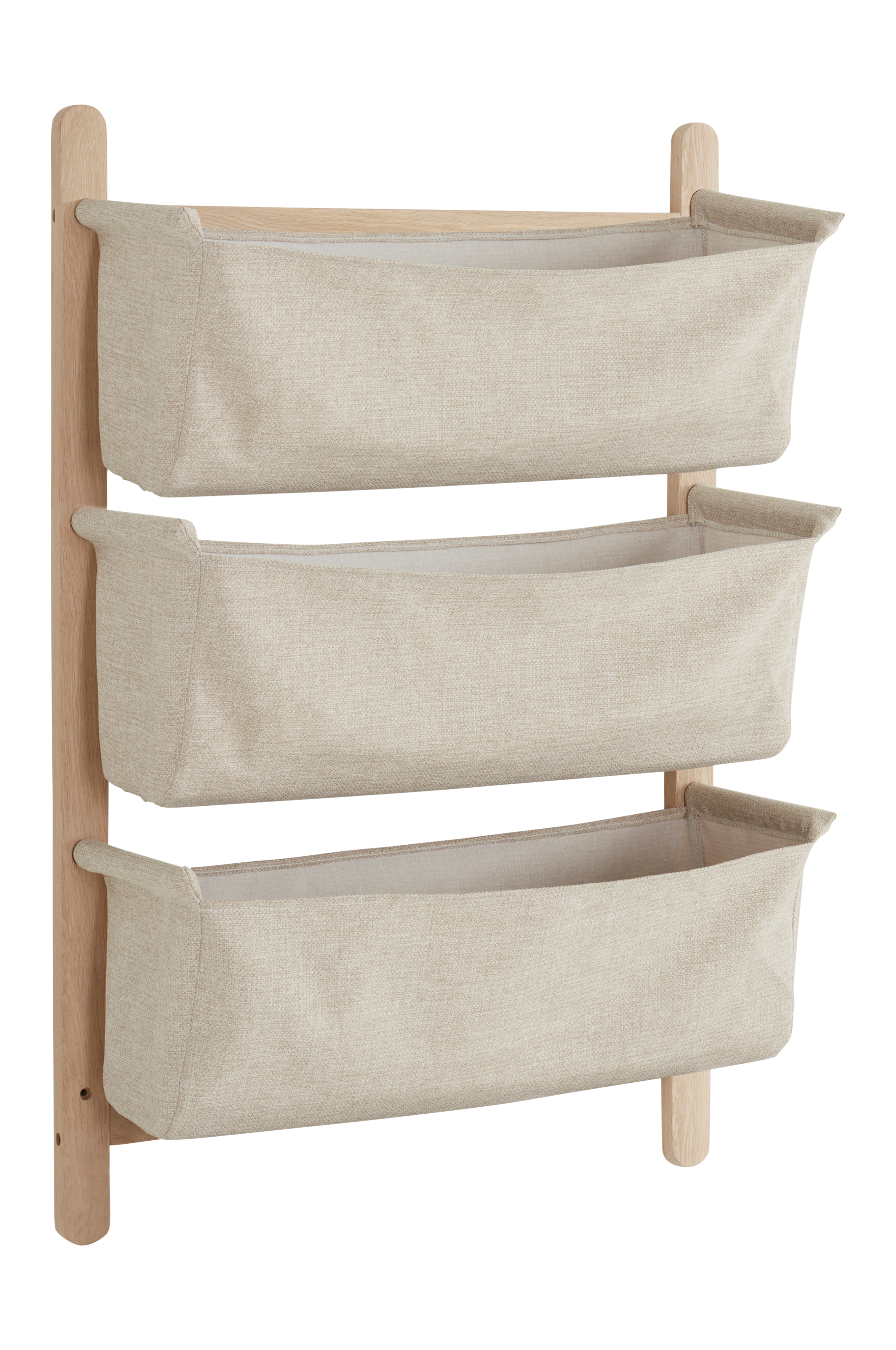 Vägghängd förvaring i stilren design med influenser från naturen och den nordiska stilen. Stommen är av FSC-märkt, massiv ek. Träet har fått en mjuk, såpad yta. Tyget i de tre påsarna är i linnefärgad canvas av polyester/polyamid. Påsarna kan tas av och tvättas. VIK passar lika bra till vantar och mössor i farstun som till leksaker i barnkammaren eller udda sockor och klädnypor i tvättstugan. Viss montering krävs. Monteringsanvisning medföljer.