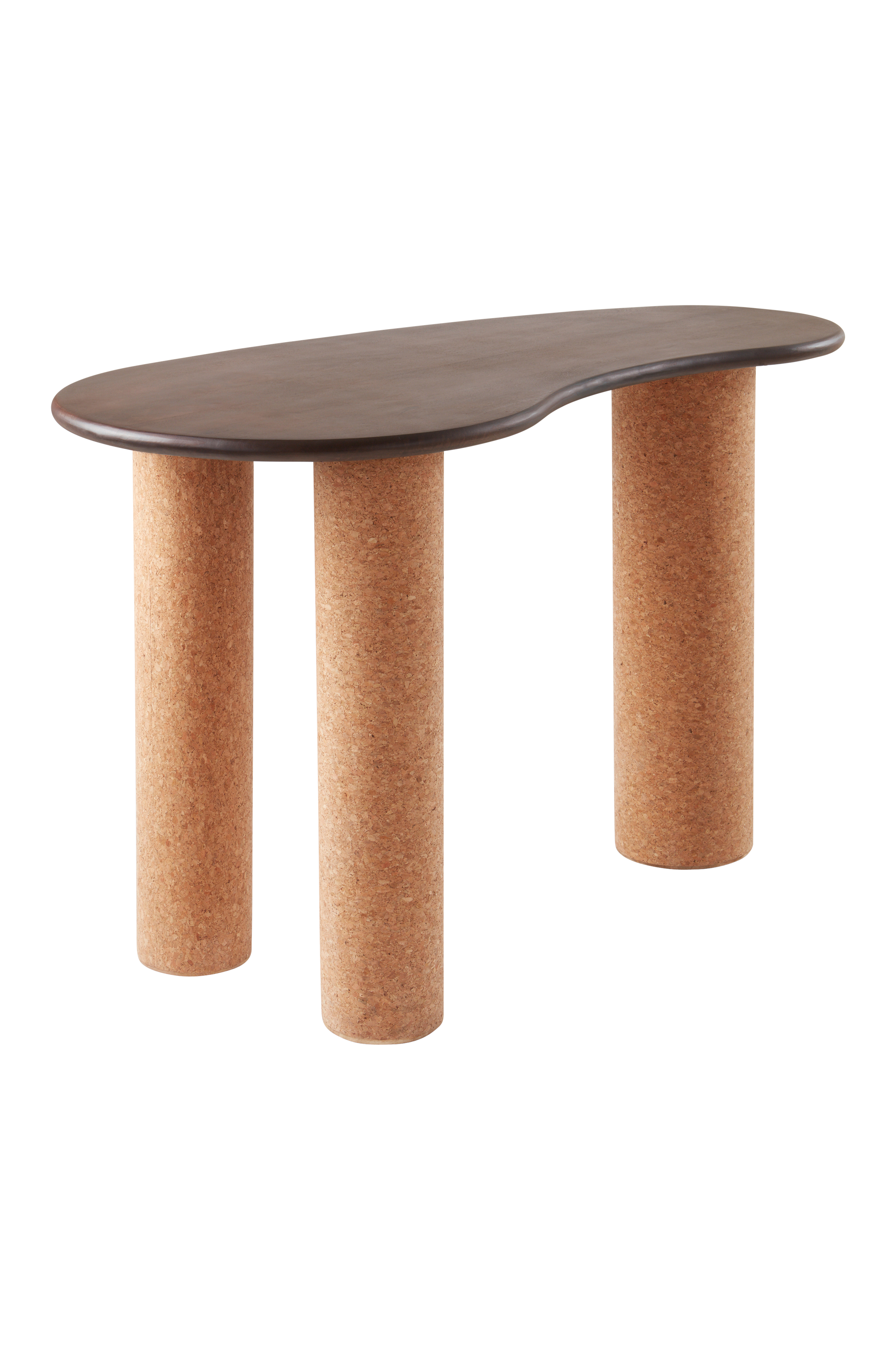 VINIO är ett kontrastrikt skrivbord med bordsskiva av massivt mangoträ och tre runda kraftiga ben av MDF som klätts med korkfaner. Kork känns helrätt just nu, det är snyggt och har skön retrokänsla. Bordsskivan har en oregelbunden, mjuk form med rundad kant och skrivbordet passar även fint som sideboard. Viss montering krävs. Monteringsanvisning medföljer.