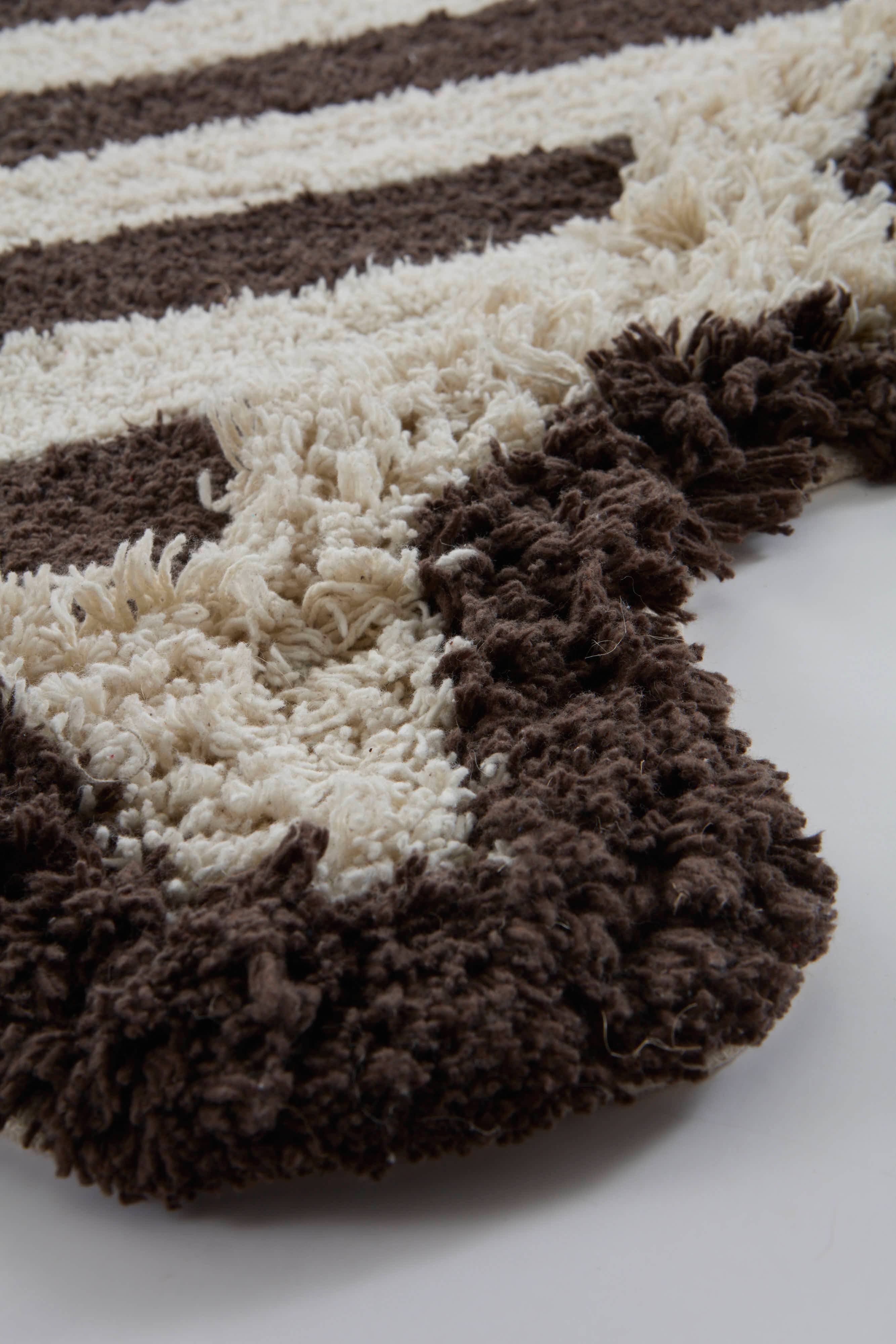 VIOLETA MINI är en charmig bomullsmatta med en mjuk, tuftad struktur och ett livfullt randigt mönster, perfekt för barnrum, sovrum och vardagsrum.