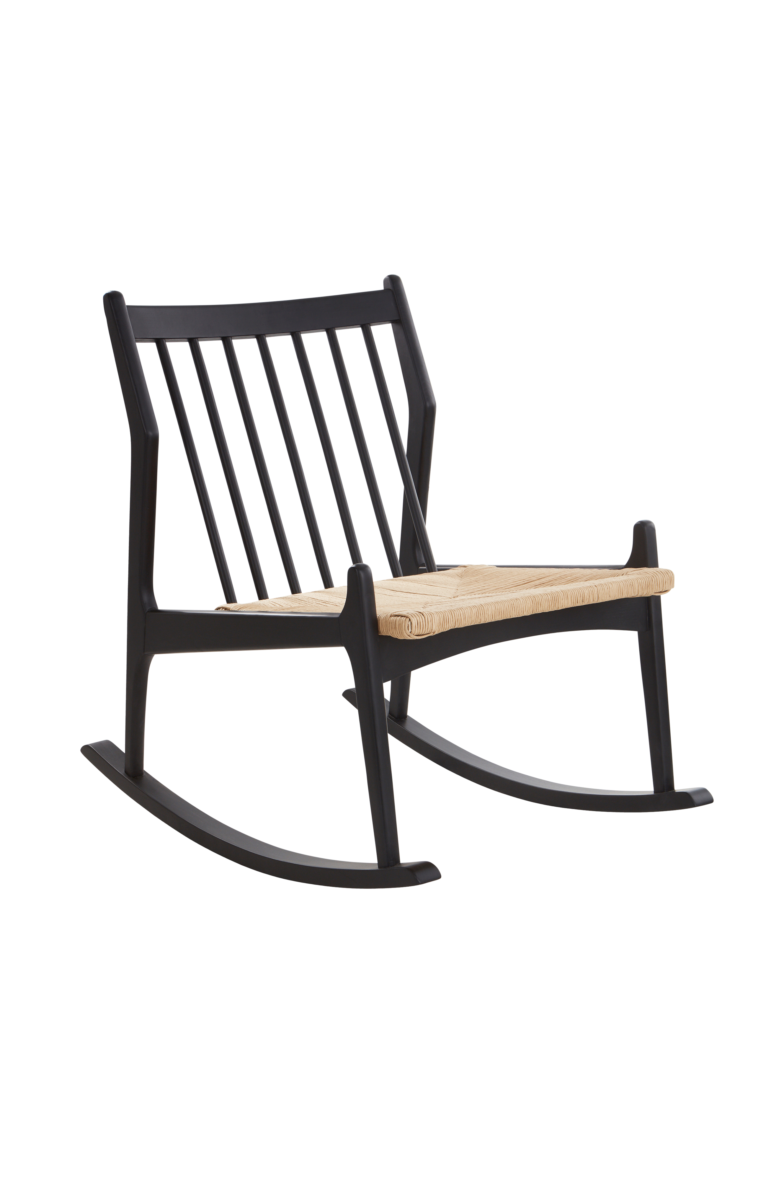 Gungstol i naturlig ek eller svartmålat almträ med sits av papperssnören. Skandinavisk stil med enkel, klassisk och stilren design. Att låta gungstolen röra sig lite ger ro och skön avslappning. Tänk på att gunga med försiktighet.