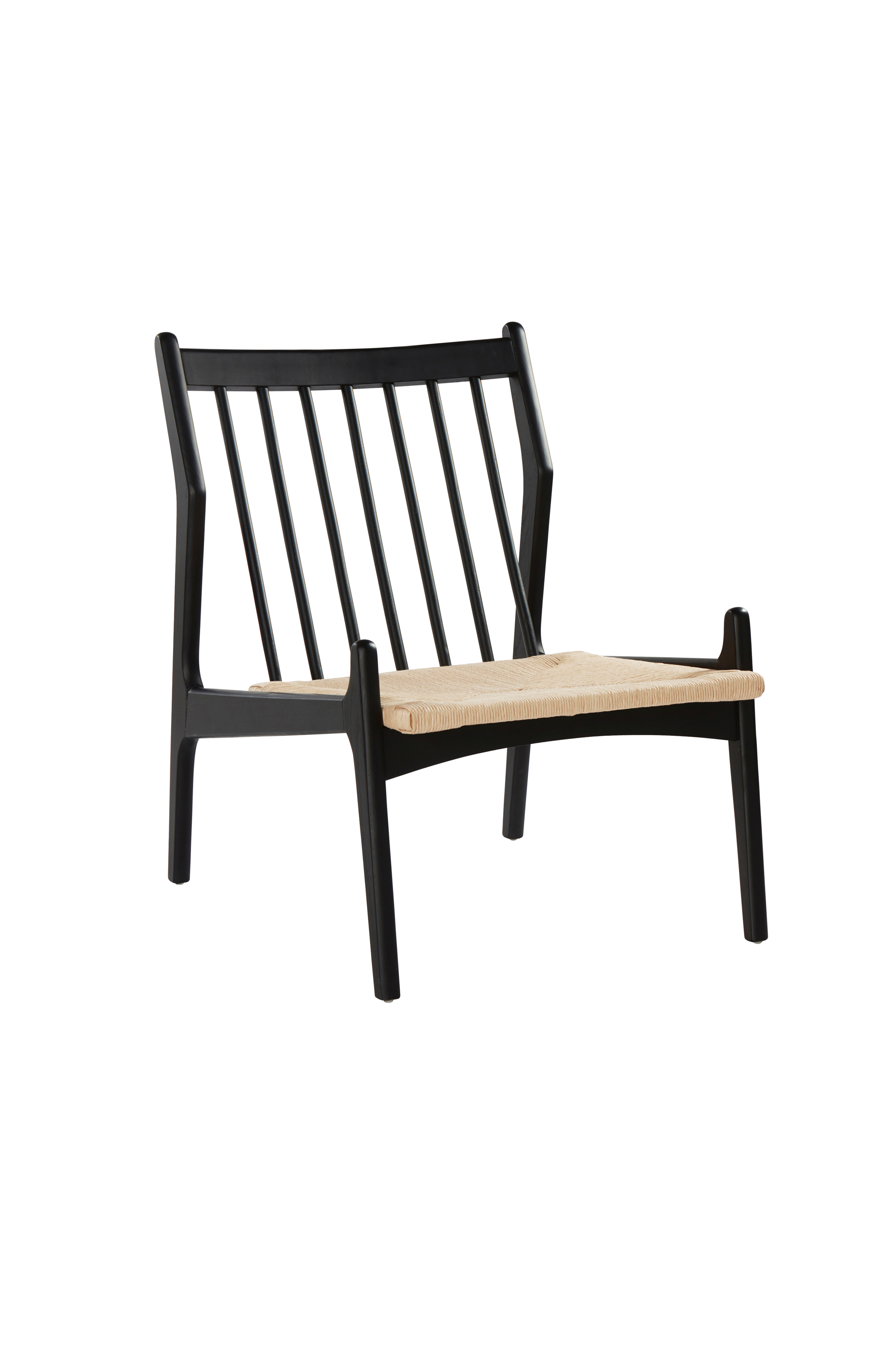 Beskrivning: Loungestol av vitsåpad ek eller mahognybetsad björk med sits av papperssnören.