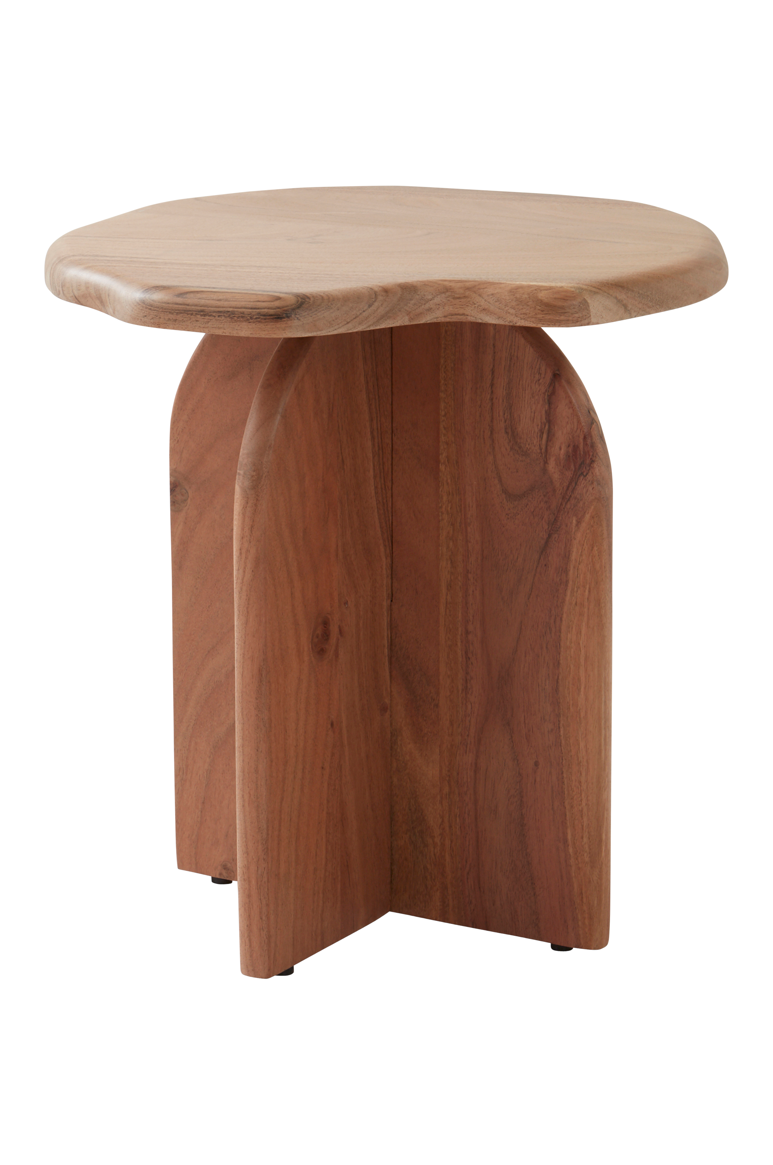 VOWL är ett spännande sidobord av acacia, som också gör sig fint som sängbord. När naturen inspirerar och vi använder naturliga material blir resultatet ofta vackert och inspirerande. Sidobordet har en fin och oregelbundet träformad bordsskiva som bejakar den naturliga känslan. Det lilla bordet har två breda ben som placerats i kors. Viss montering krävs. Monteringsanvisning medföljer.