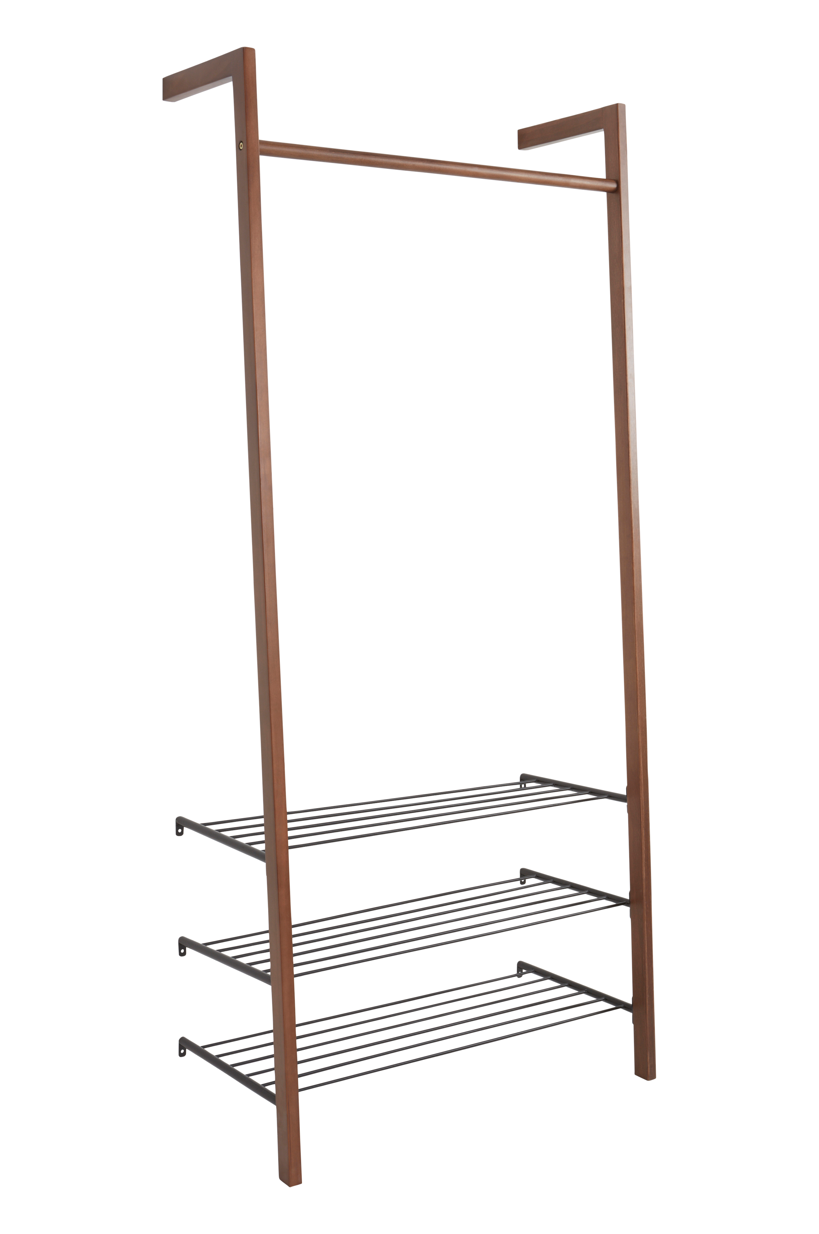 Hallförvaring i FSC-märkt, massiv furu med tre skohyllor av metallrör. Stången upptill passar bra att hänga galgar på. Den nätta och stilrena hallmöbeln står på golvet och skruvas fast i väggen, både upptill och vid skohyllorna. Stommen är av FSC-märkt, massiv furu. Galgar medföljer ej. Viss montering krävs. Monteringsanvisning medföljer.