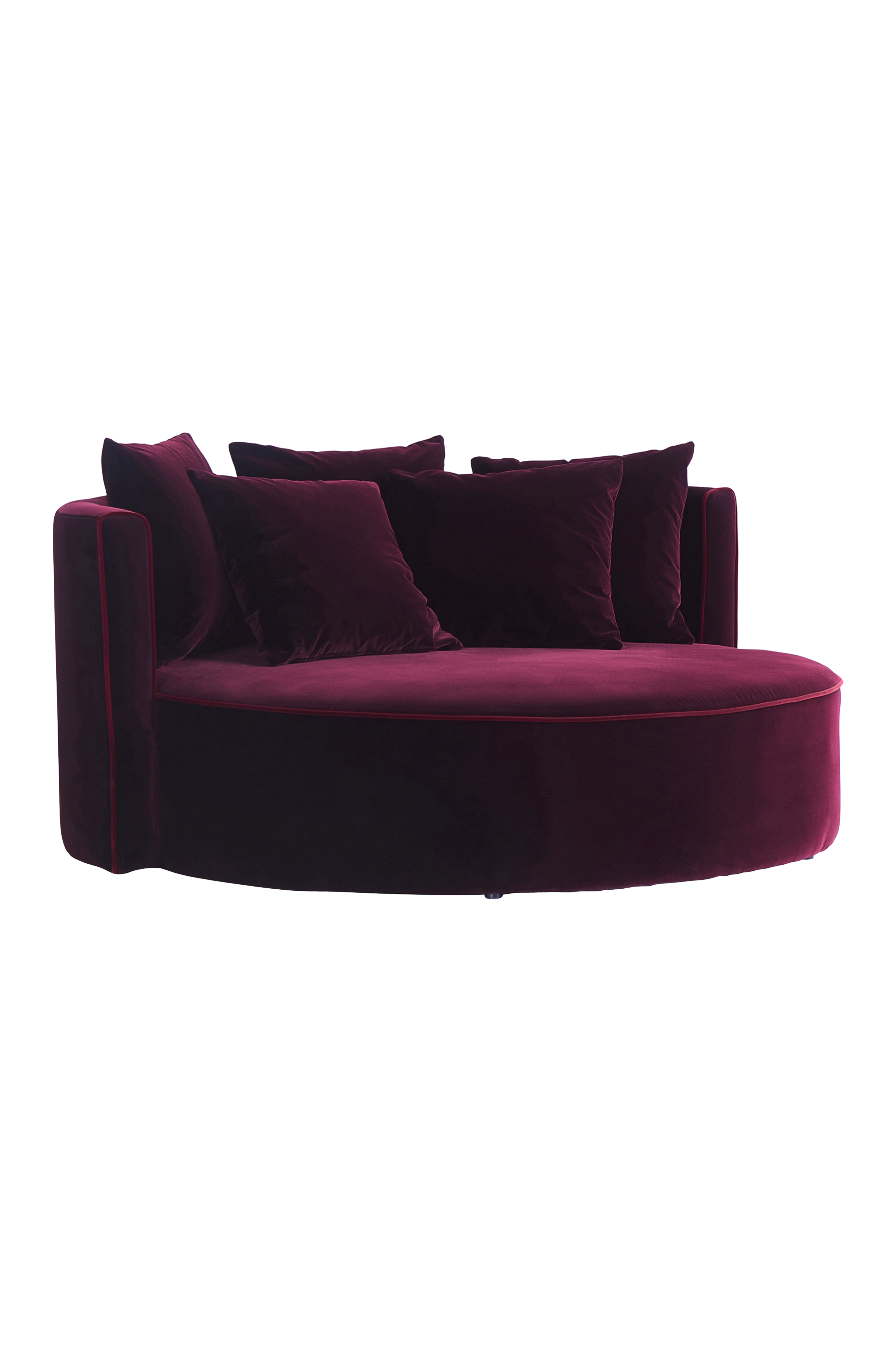 Rund sammetssoffa med extra slitstark sammetsklädsel av bomull och polyester. WYOMING har en stabil stomme av furuträ och plywood med god sittkomfort tack vare sin fantastiska uppbyggnad av kallskum, zickzackfjädring, resårband samt den sköna stoppningen av fjäder och bollfiber. Ryggkuddarna har stoppning av fjäder och bollfiber som gör dem bekväma att luta sig mot. .