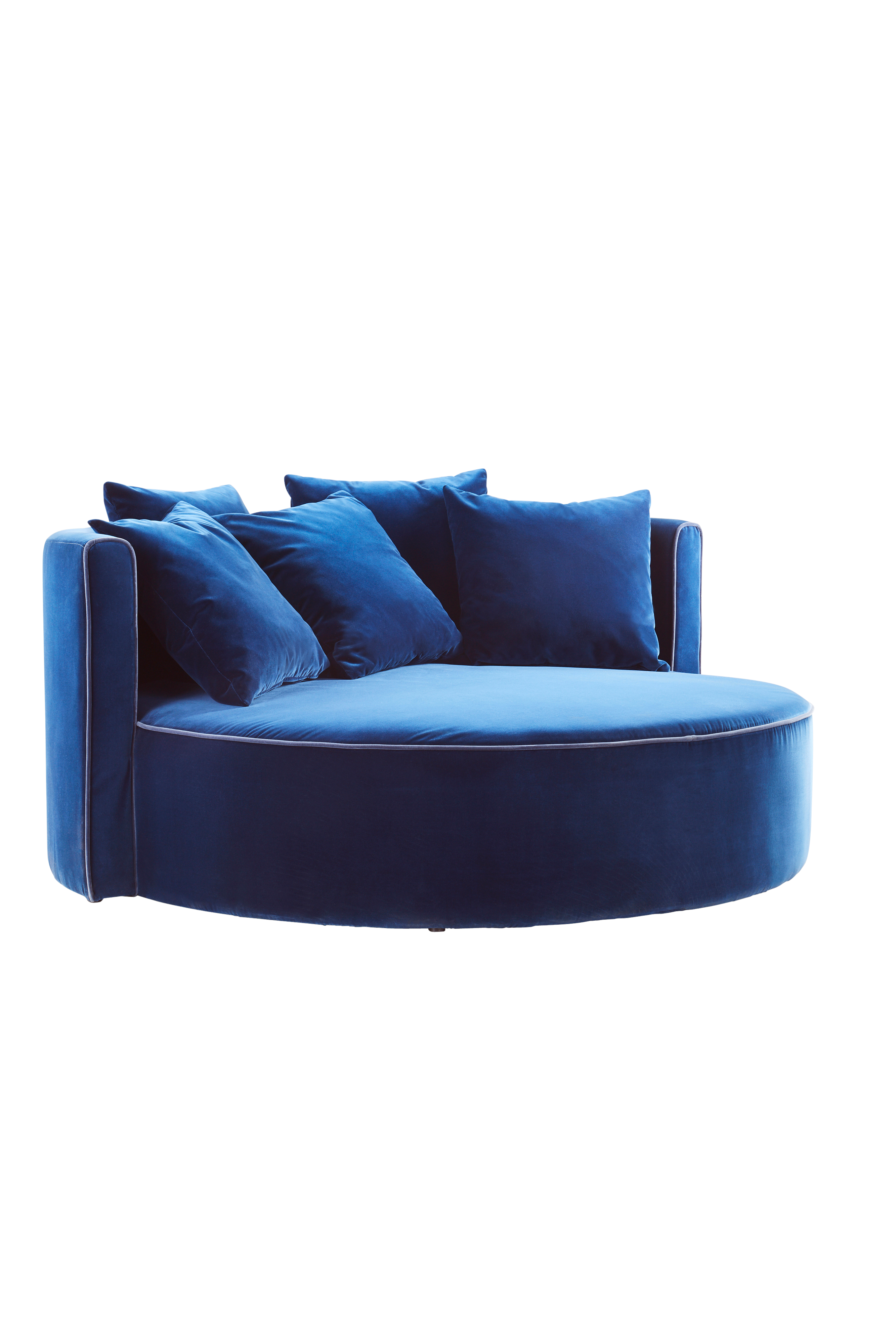 Rund sammetssoffa med extra slitstark sammetsklädsel av bomull och polyester. WYOMING har en stabil stomme av furuträ och plywood med god sittkomfort tack vare sin fantastiska uppbyggnad av kallskum, zickzackfjädring, resårband samt den sköna stoppningen av fjäder och bollfiber. Ryggkuddarna har stoppning av fjäder och bollfiber som gör dem bekväma att luta sig mot. .