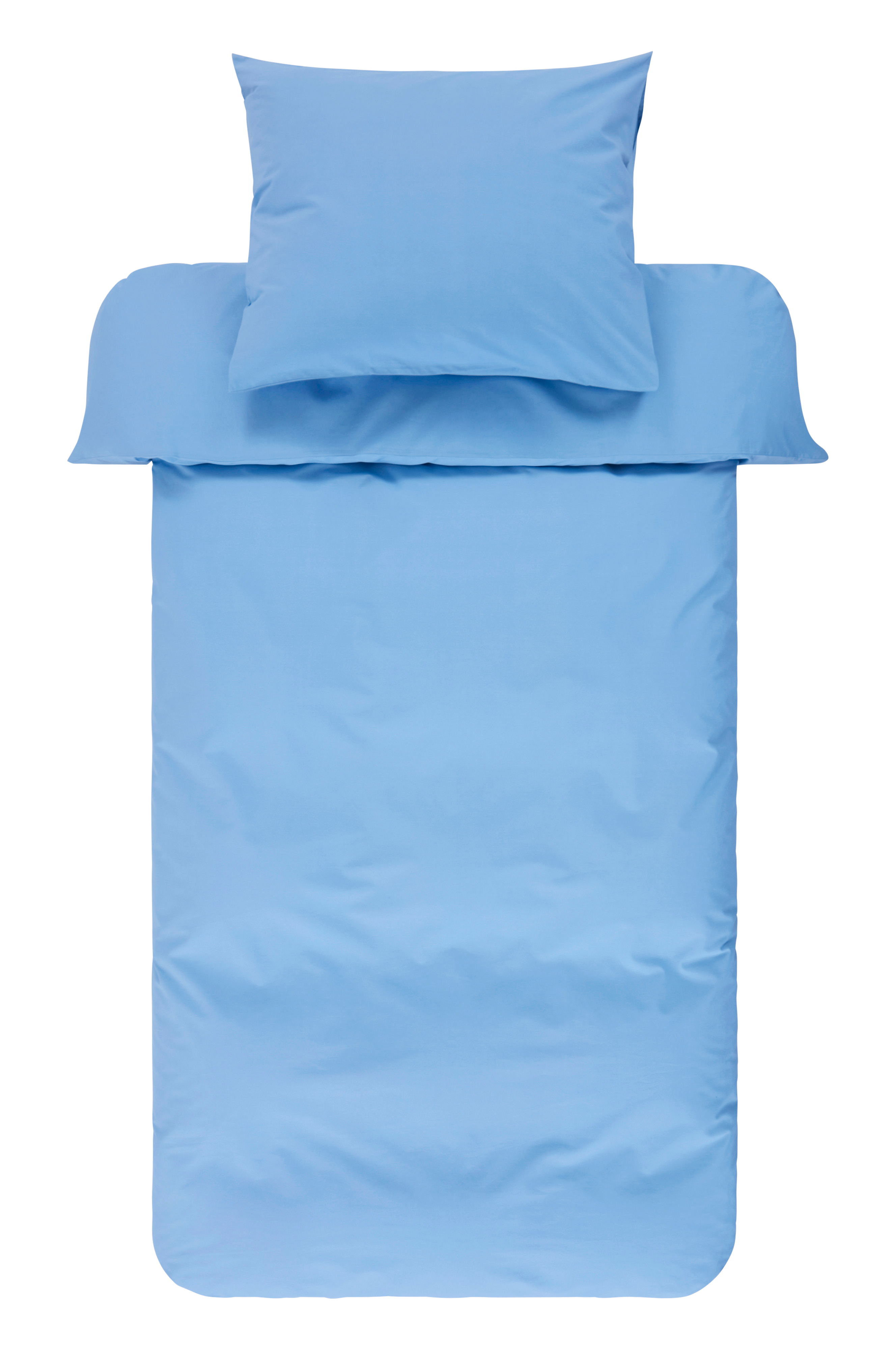 Enfärgat påslakanset i två delar, ett påslakan och ett örngott i underbar percale av ekologisk bomull. Percale är ett extra mjukt och behagligt tyg som vävts med tunna, fina bomullstrådar. Öppning i övre hörnen på påslakanet, som underlättar att trä påslakanet över täcket. Trådtäthet på 200 tc. (Trådtätheten talar om antalet trådar, thread counts, per kvadrattum i ett tyg. Ju högre trådtäthet desto högre kvalité.)