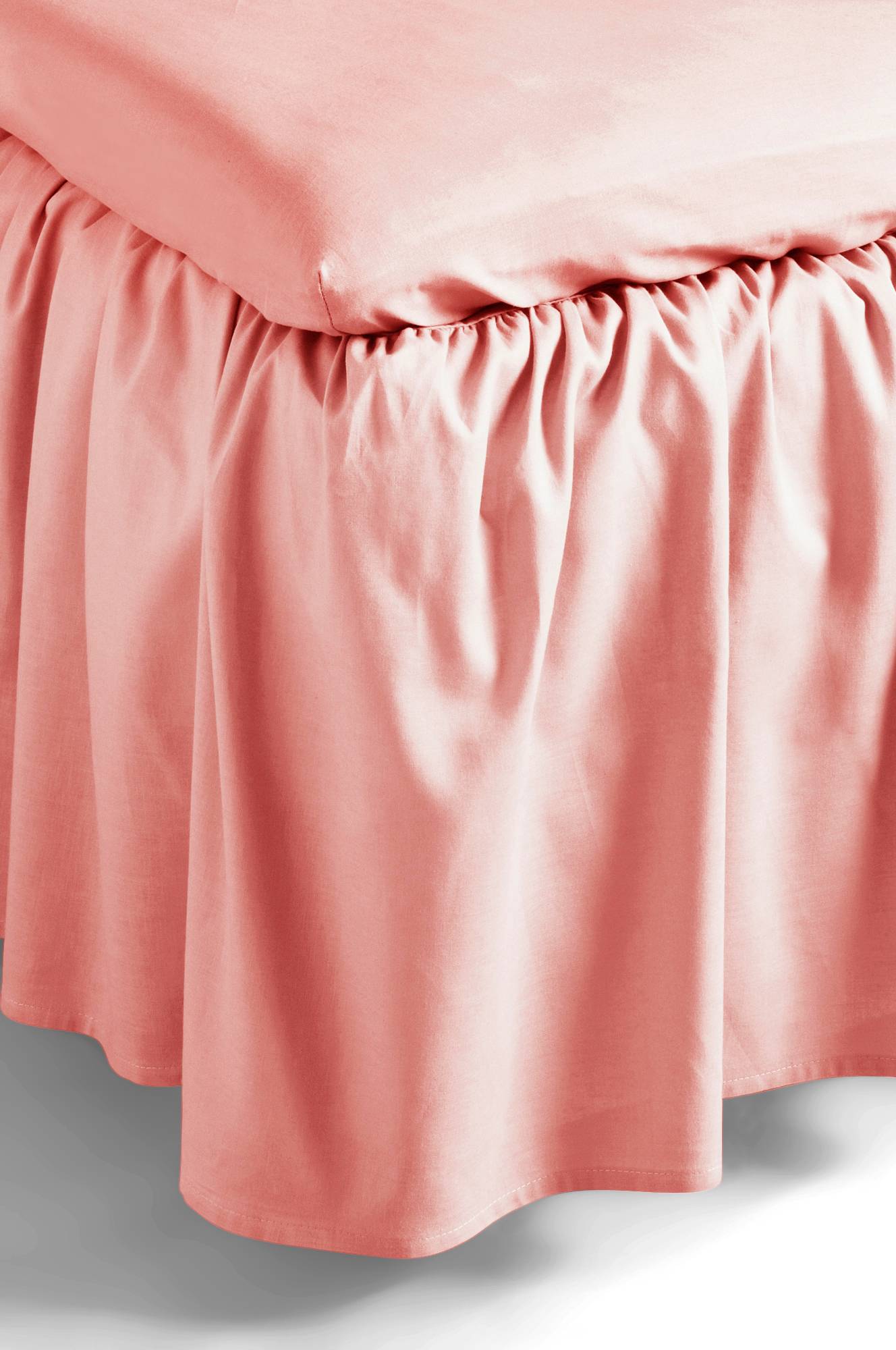 Enfärgad sängkappa med volanger i ekologisk bomull. Att bädda i ekologisk bomull är luftigt, mjukt och lättskött. Perfekta sängkläder för stor som liten, för familjen på landet och för singeln i stan. Trådtäthet på 144 tc. (Trådtätheten talar om antalet trådar, thread counts, per kvadrattum i ett tyg. Ju högre trådtäthet desto högre kvalité).