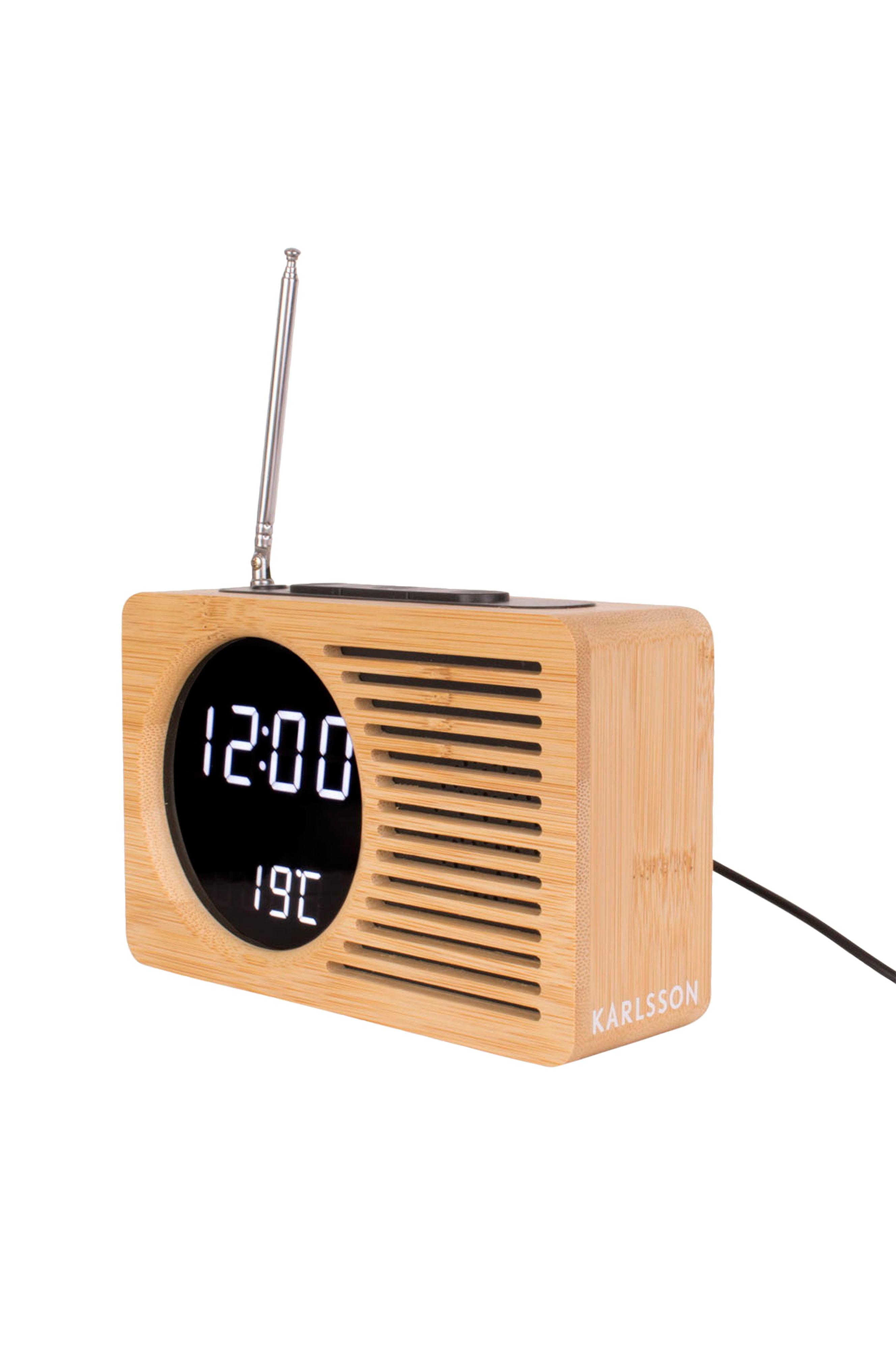 Hej boho! Väckarklockan retro radio från karlsson stjäl uppmärksamheten på ditt nattduksbord. Med sin eleganta och bohemiska look är väckarklockan mycket mer än bara praktisk. Den digitala tiden och temperaturen visas på den runda inbyggda led-skärmen och dess hölje är tillverkat av robust bamboo. Vakna upp med en trevlig melodi? Det är väl spenderat på den här väckarklockan.