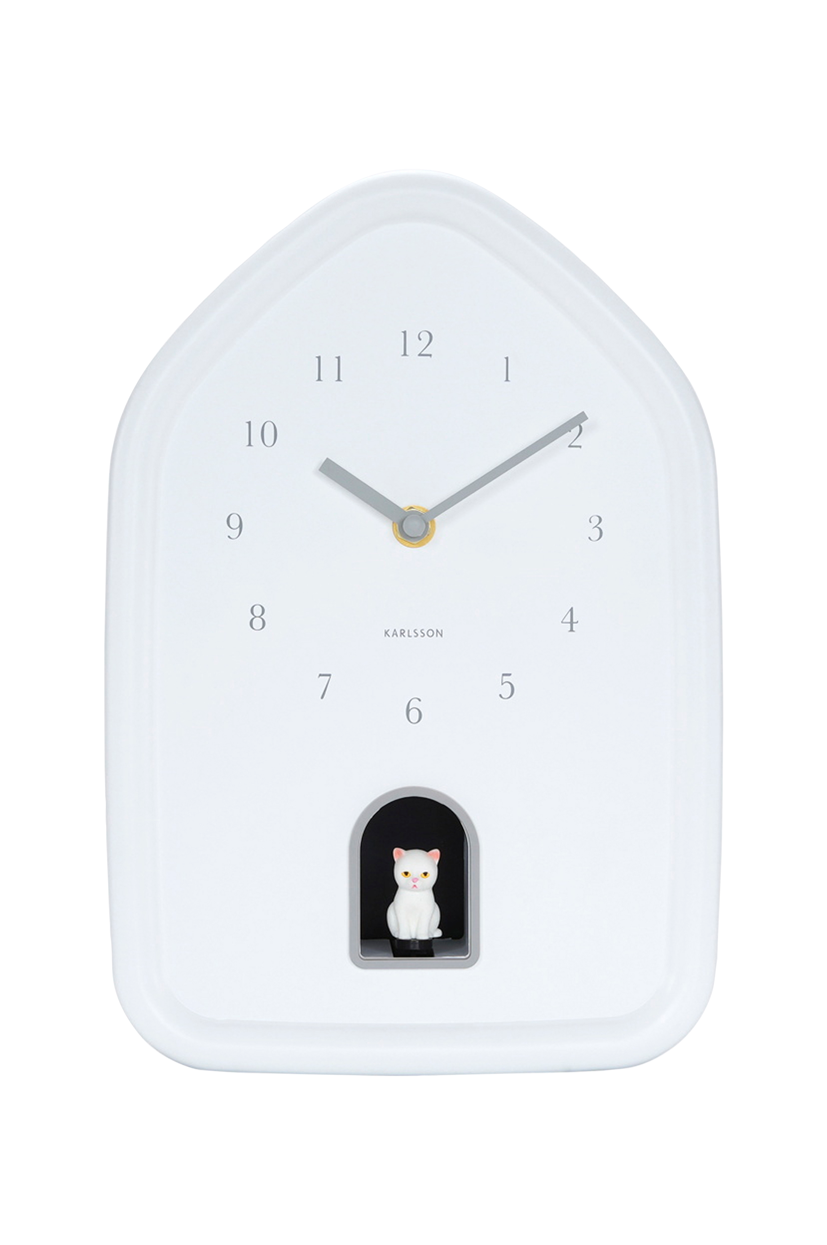 Karlssons väggklocka " modern " kitty kombinerar enkelhet med en lekfull touch. Varje timme dyker en söt kattunge upp och jamar mjukt. Den husformade designen och de matta färgerna ger klockan ett varmt och modern t utseende. Perfekt för kattälskare och alla som uppskattar elegant, lekfull design.
