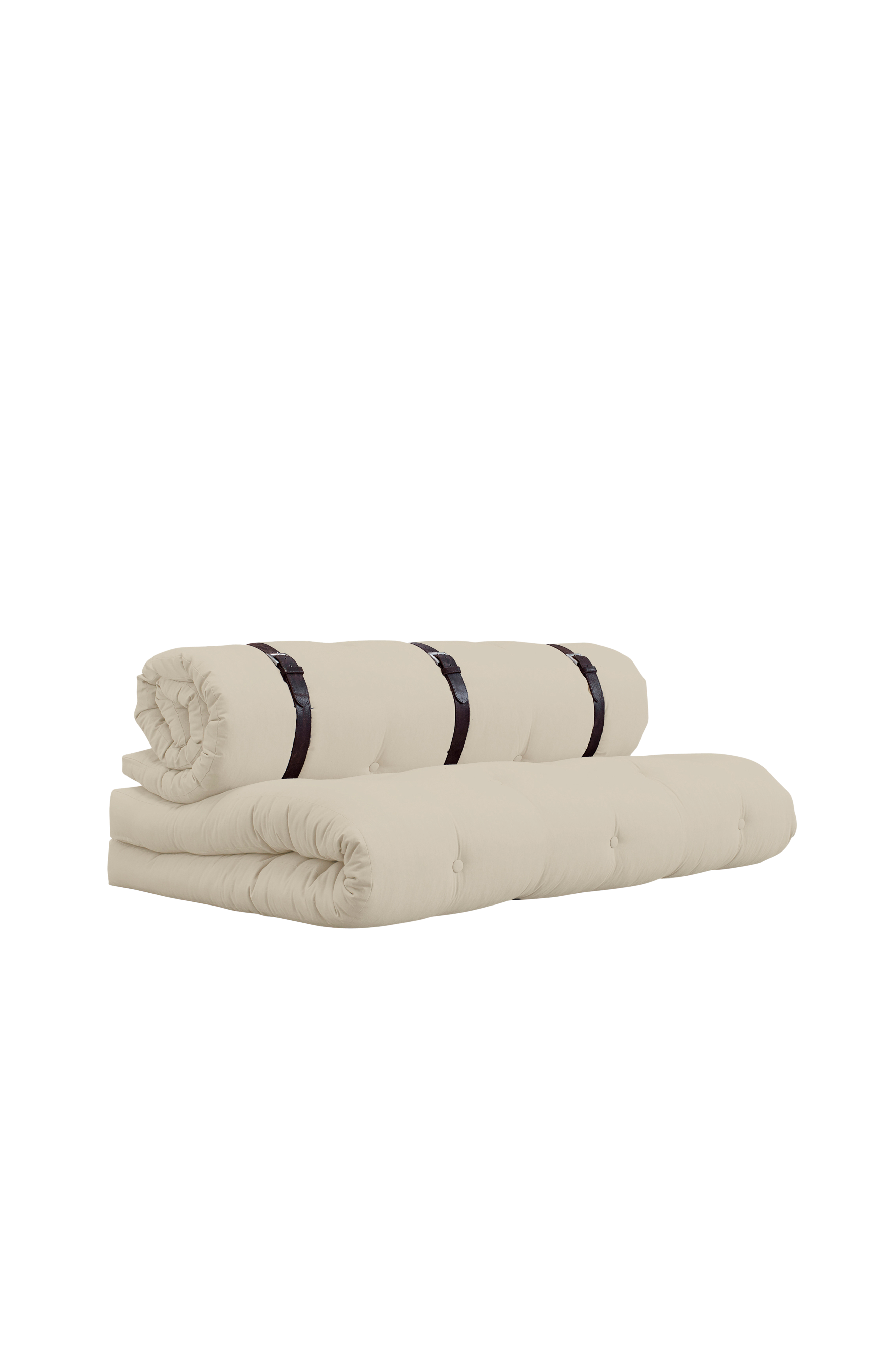 Sit . Roll . Sleep - Buckle-Up förvandlas enkelt från en modern sittplats till ett funktionellt gästboende i tre enkla steg. Vik helt enkelt ut sittdynan, lossa upp det rullade ryggstödet och stapla sedan båda futonerna för att skapa en lyxig, tjock bädd som ger dämpad komfort hela natten. Våra futoner är bredare och tjockare än traditionella futoner. Buckle-Up är mycket funktionell, elegant och ett utmärkt sätt att maximera din bostadsyta.