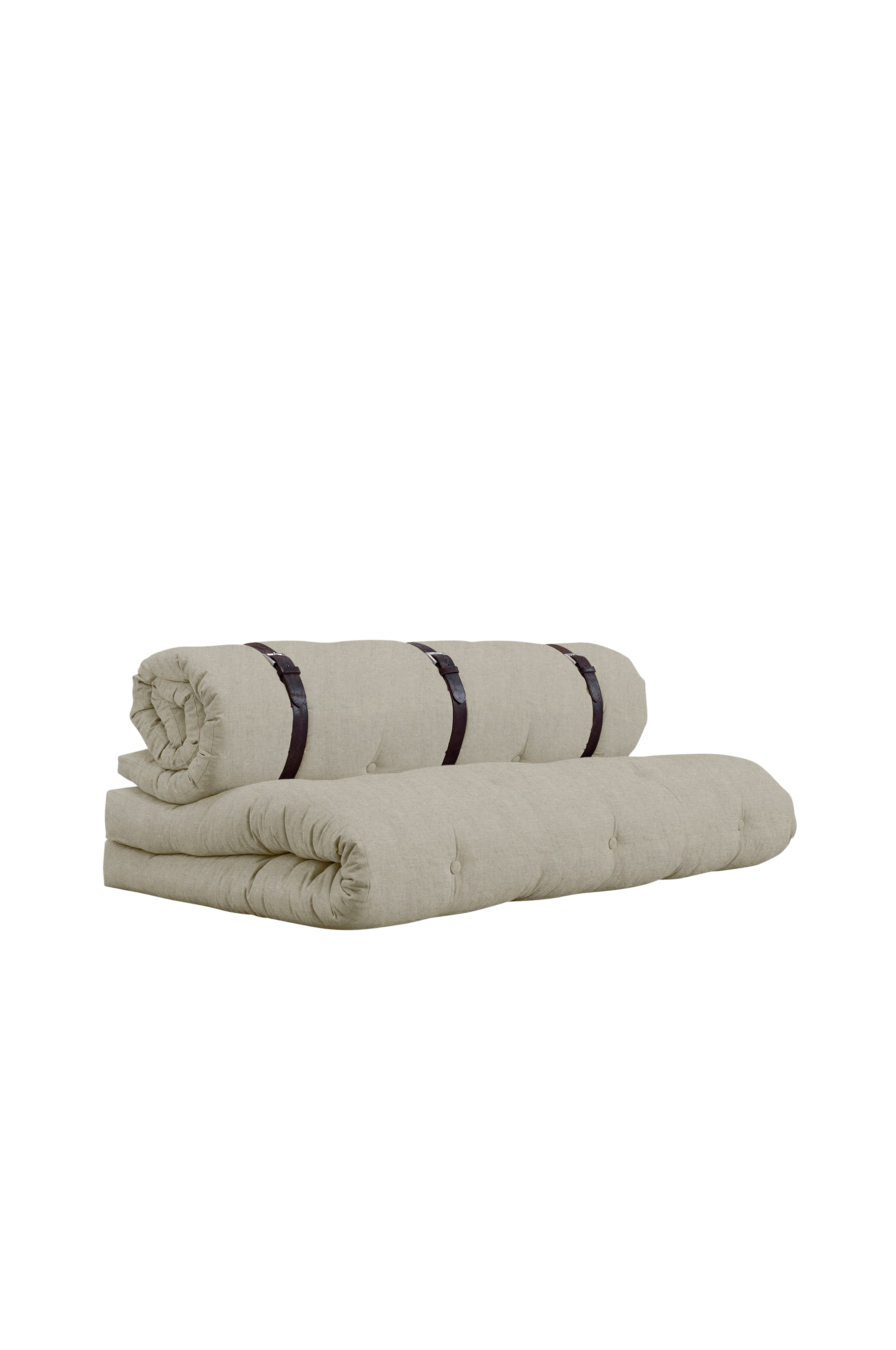 Sit . Roll . Sleep - Buckle-Up förvandlas enkelt från en modern sittplats till ett funktionellt gästboende i tre enkla steg. Vik helt enkelt ut sittdynan, lossa upp det rullade ryggstödet och stapla sedan båda futonerna för att skapa en lyxig, tjock bädd som ger dämpad komfort hela natten. Våra futoner är bredare och tjockare än traditionella futoner. Buckle-Up är mycket funktionell, elegant och ett utmärkt sätt att maximera din bostadsyta.