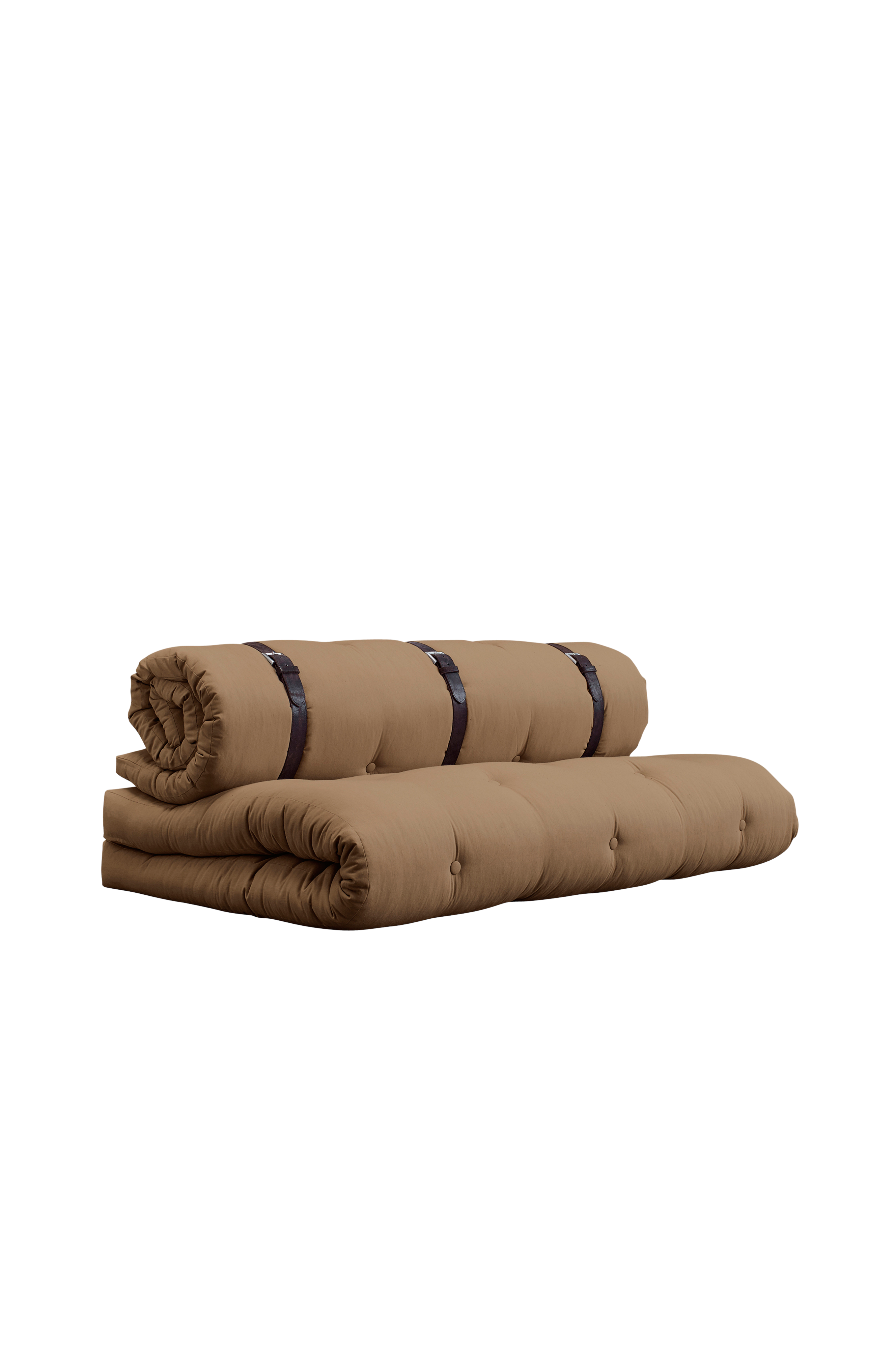 Sit . Roll . Sleep - Buckle-Up förvandlas enkelt från en modern sittplats till ett funktionellt gästboende i tre enkla steg. Vik helt enkelt ut sittdynan, lossa upp det rullade ryggstödet och stapla sedan båda futonerna för att skapa en lyxig, tjock bädd som ger dämpad komfort hela natten. Våra futoner är bredare och tjockare än traditionella futoner. Buckle-Up är mycket funktionell, elegant och ett utmärkt sätt att maximera din bostadsyta.