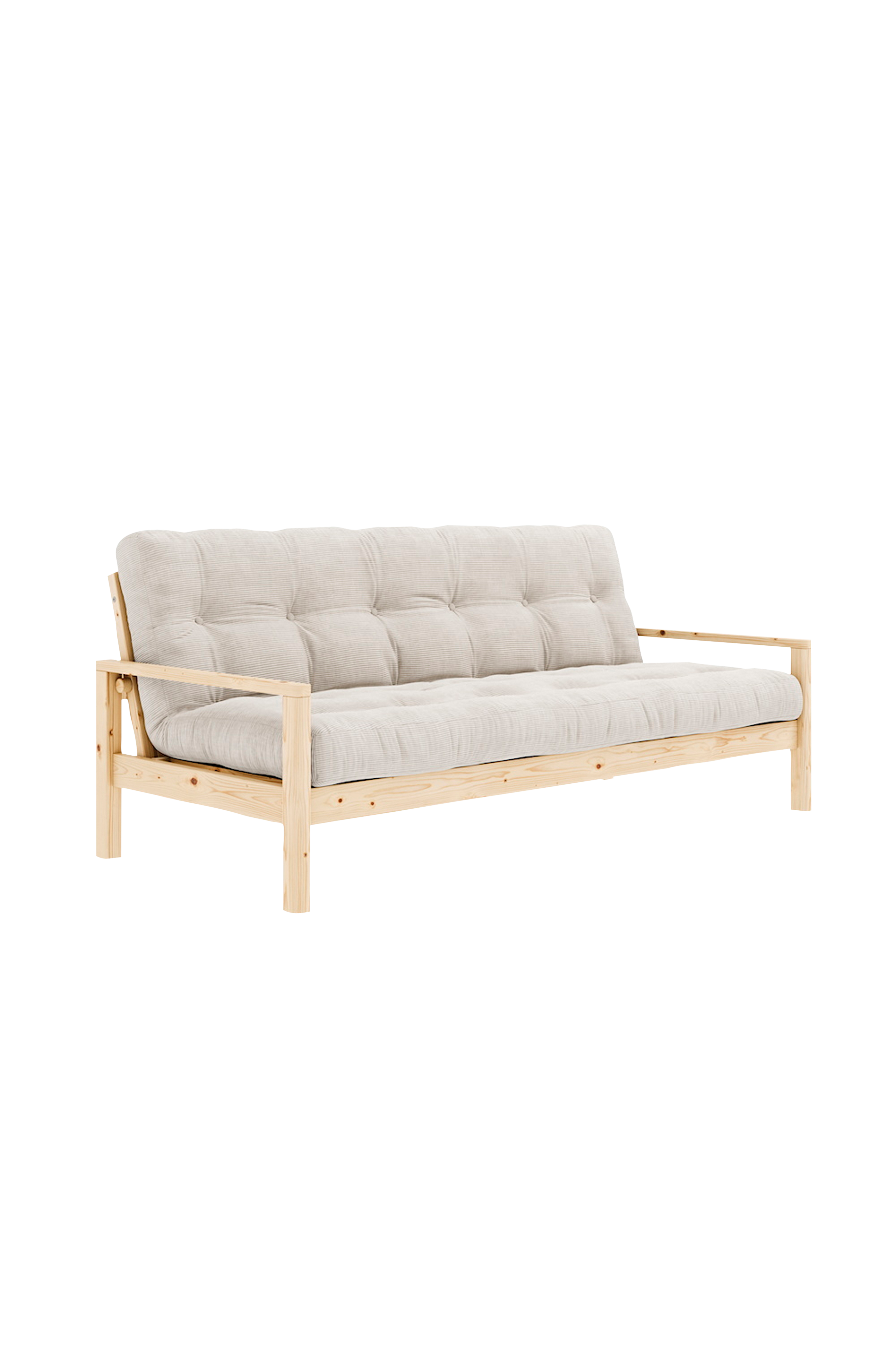 Lätt . Att . Förvandla Knob sticker ut från våra andra bäddsoffor med sin vackra elegans. Den är elegant, nätt och ger inredningen en lätt känsla, samtidigt som den är användarvänlig och funktionell. Under båda armstöden finns en knapp som enkelt skruvas loss för att förvandla den moderna soffan till en bekväm säng för antingen dig själv eller dina övernattande gäster.