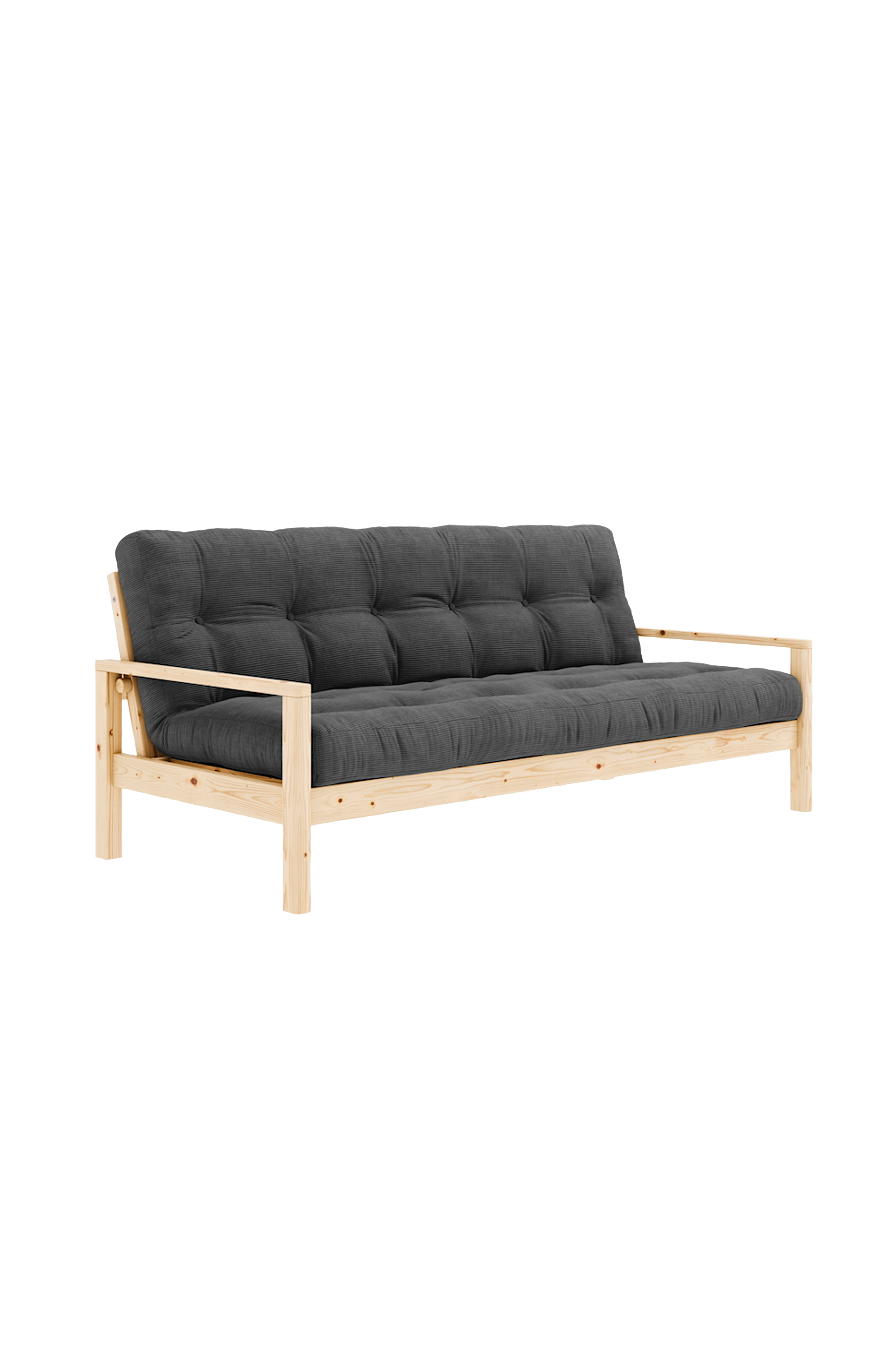 Lätt . Att . Förvandla Knob sticker ut från våra andra bäddsoffor med sin vackra elegans. Den är elegant, nätt och ger inredningen en lätt känsla, samtidigt som den är användarvänlig och funktionell. Under båda armstöden finns en knapp som enkelt skruvas loss för att förvandla den moderna soffan till en bekväm säng för antingen dig själv eller dina övernattande gäster.