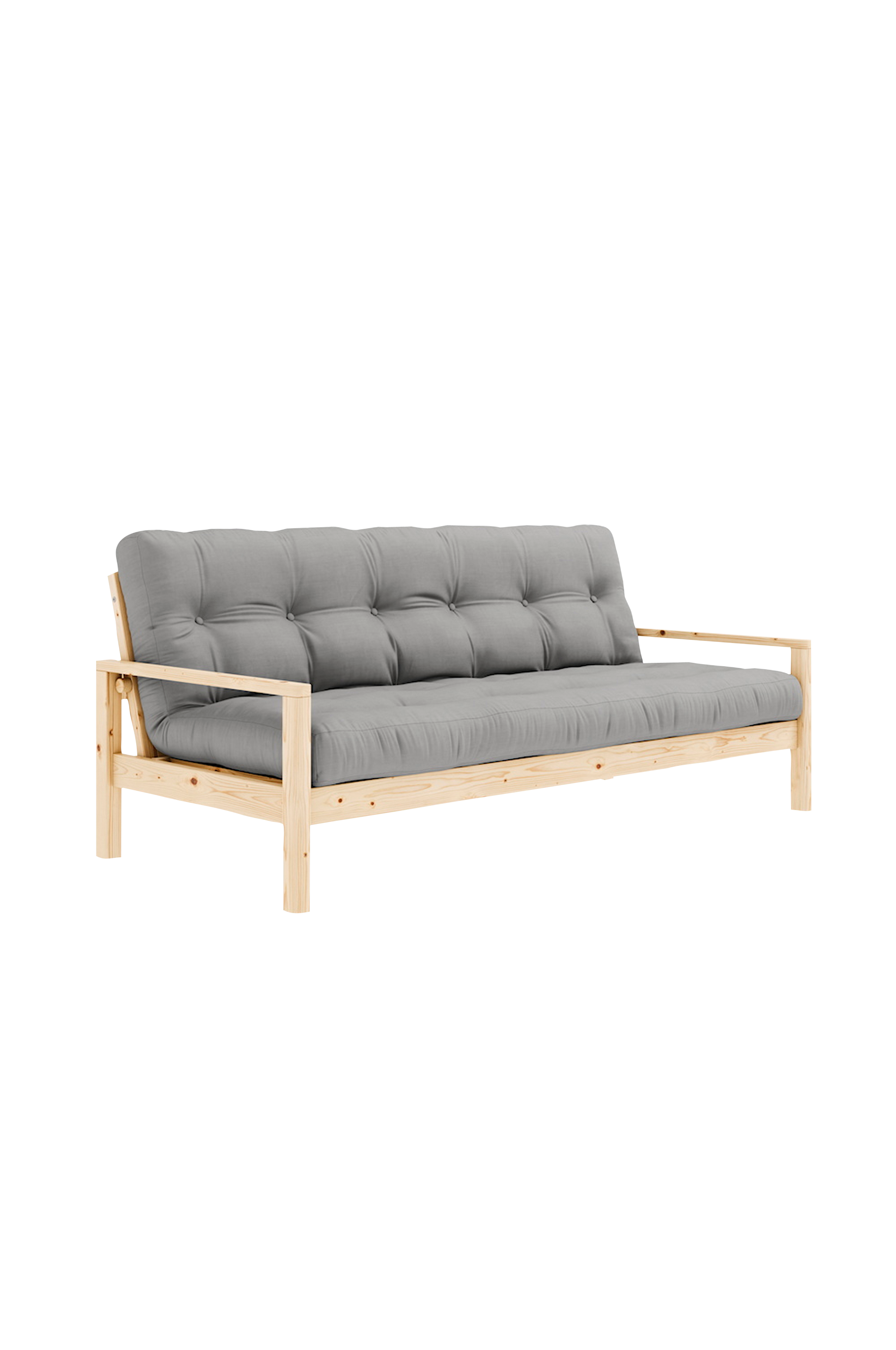 Lätt . Att . Förvandla Knob sticker ut från våra andra bäddsoffor med sin vackra elegans. Den är elegant, nätt och ger inredningen en lätt känsla, samtidigt som den är användarvänlig och funktionell. Under båda armstöden finns en knapp som enkelt skruvas loss för att förvandla den moderna soffan till en bekväm säng för antingen dig själv eller dina övernattande gäster.