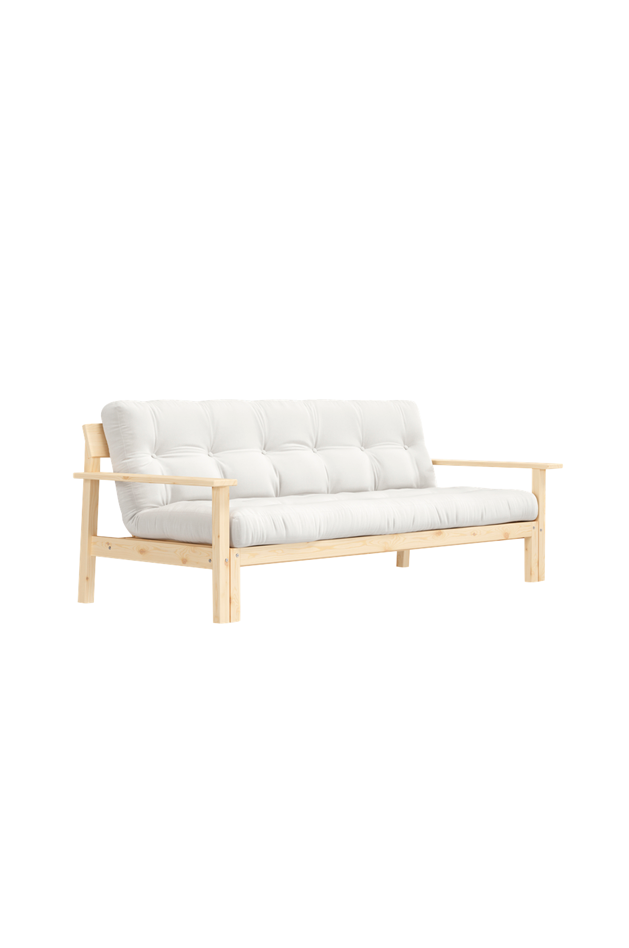 Namnet säger allt: detta är den perfekta soffan för att varva ner och koppla av. Med en enkel rörelse förvandlas den från en elegant, 1950-talsinspirerad soffa av furu till en filmkvällssoffa som bara väntar på att du ska slå dig ner, luta dig tillbaka och koppla av. Det breda armstödet fungerar som ett litet inbyggt sidobord och gör att du har allt du behöver inom räckhåll.
