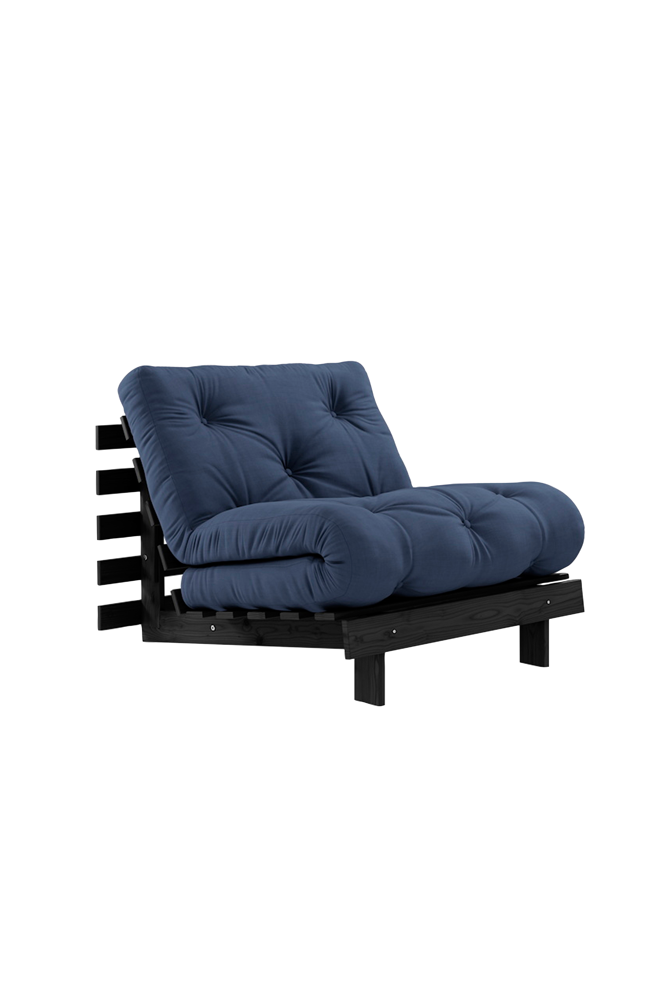 A Timeless Piece - roots 90 är kärnan i karups designdna: här får du inte bara en soffa utan också en säng och en bekväm fåtölj. Genom att lägga ner frambenen och justera ryggstödet får du en skön fåtölj. Genom att sänka ner ryggen helt får du en skön säng där du kan ladda upp med rötterna i marken. Fördubbla ryggen, fäll över madrassen och nu har du en fåtölj i normalhöjd. Roots 90 förvandlas snabbt och enkelt - precis som magi. Förstår du vad jag menar? Observera att alla våra futonprodukter är handgjorda, så du kan märka små skillnader i storlek och vikt.