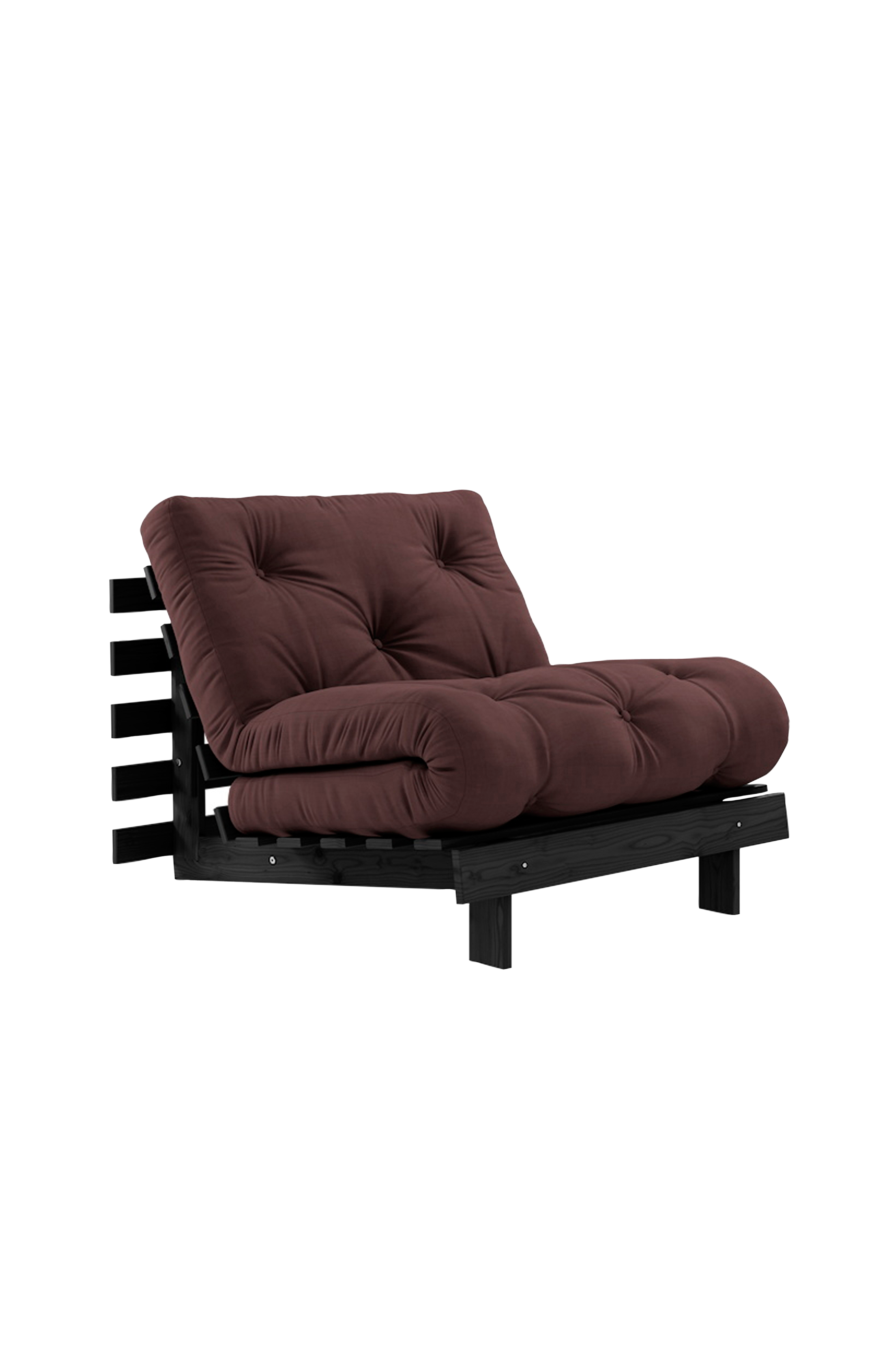 A Timeless Piece - roots 90 är kärnan i karups designdna: här får du inte bara en soffa utan också en säng och en bekväm fåtölj. Genom att lägga ner frambenen och justera ryggstödet får du en skön fåtölj. Genom att sänka ner ryggen helt får du en skön säng där du kan ladda upp med rötterna i marken. Fördubbla ryggen, fäll över madrassen och nu har du en fåtölj i normalhöjd. Roots 90 förvandlas snabbt och enkelt - precis som magi. Förstår du vad jag menar? Observera att alla våra futonprodukter är handgjorda, så du kan märka små skillnader i storlek och vikt.