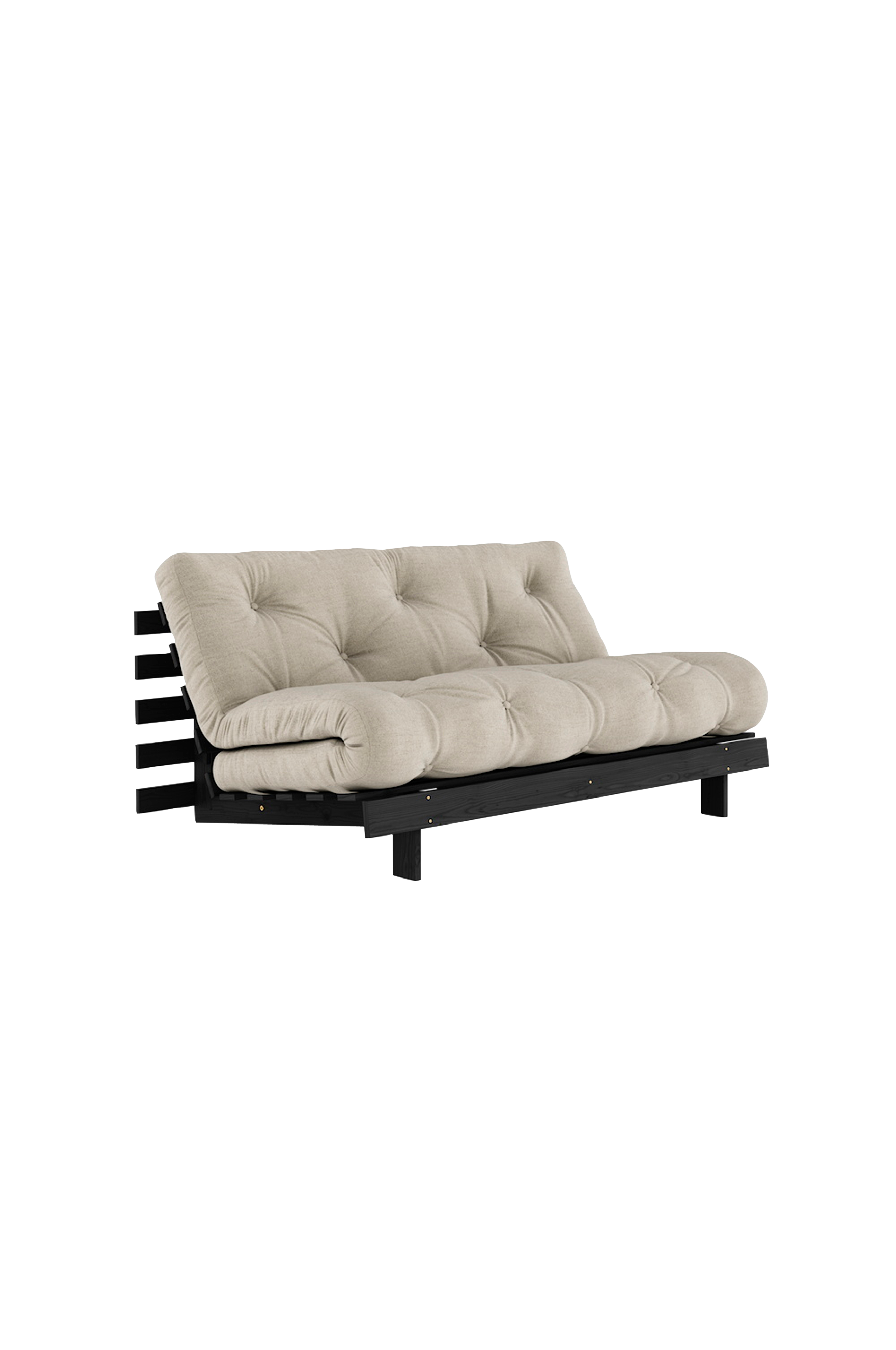 A . Tidlös . Piece en tidlös bäddsoffa. Roots 160 är kärnan i karups designdna: du får inte bara en soffa utan också en dubbelsäng med möjlighet att höja ett bekvämt ryggstöd som du kan ladda upp på med rötterna i marken. Fördubbla ryggstödet, vik över madrassen och du har en bäddsoffa i normalhöjd. Roots 160 förvandlas snabbt och enkelt - precis som magi. Förstår du vad jag menar? Observera att alla våra futonprodukter är handgjorda, så du kan märka små skillnader i storlek och vikt.
