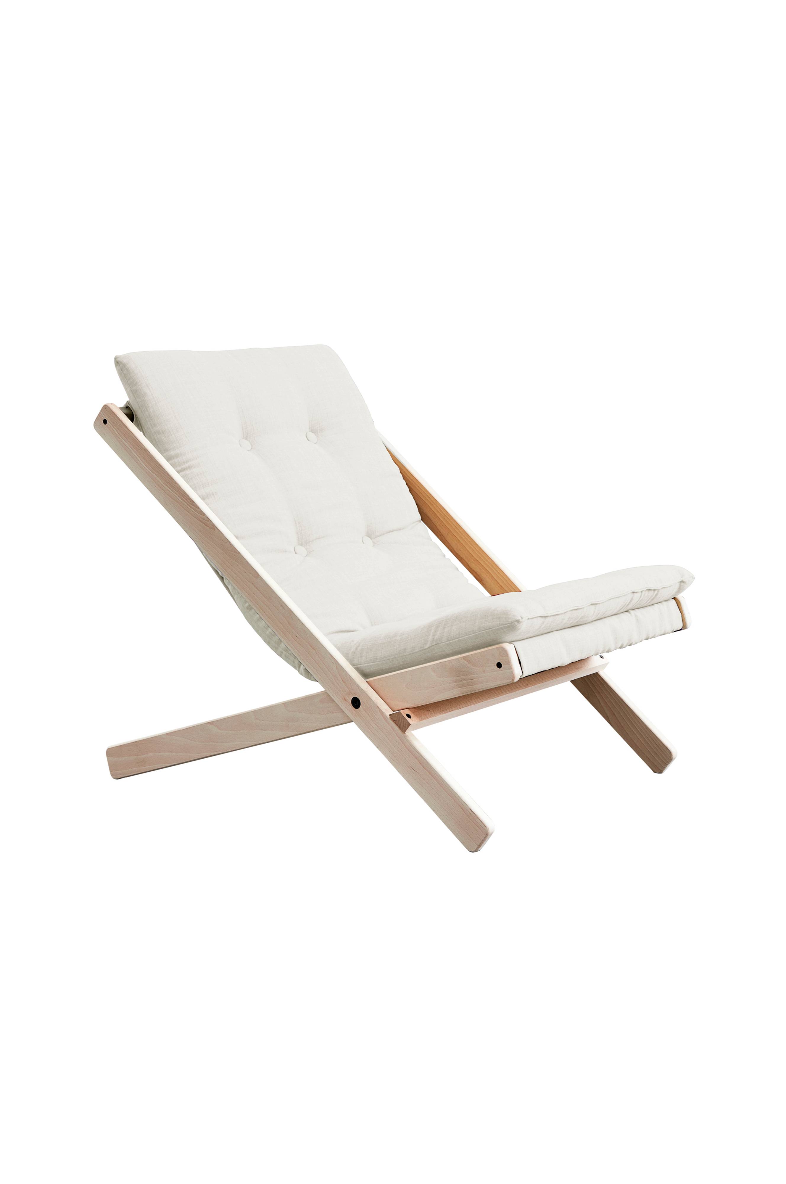 Lean. Read. Repeat - Boogie är en stol som ger bra utseende och överlägsen komfort. Oavsett om du chattar, loungar eller tar en tupplur, kommer du att känna dig bra i en Boogie. Den klassiska, slingade designen är hemma i alla inredningar. Och det är verkligen platsbesparande: Vik bara ihop och ställ undan. Design av Says Who för Karup Design. Trädetaljer av massiv furu.