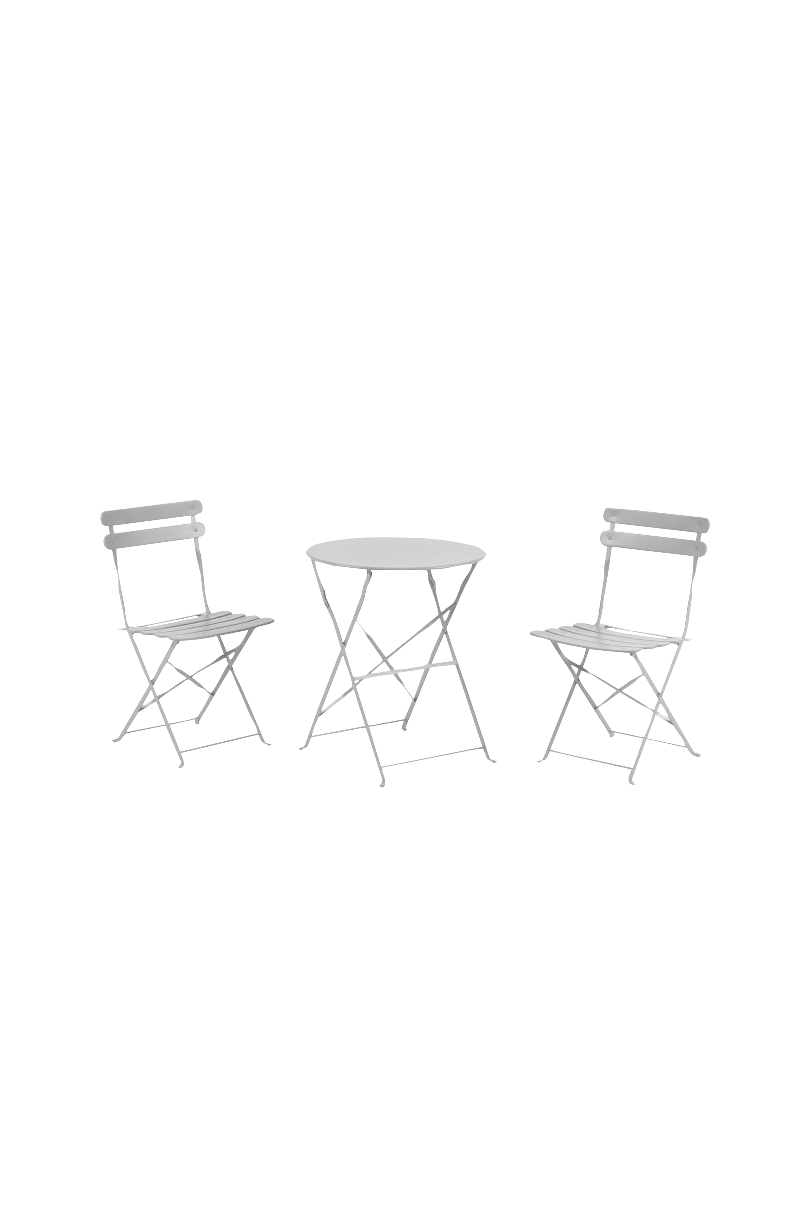 Mindre utrymmen, som din balkong, ser välkomnande ut med detta metallbord och två stolar. De är också rostbeständiga och fällbara för att inte ta upp plats när de inte används. Mått; bord diameter 60 cm, höjd 71 cm. Stol bredd 42 cm, djup 48 cm, höjd 82 cm