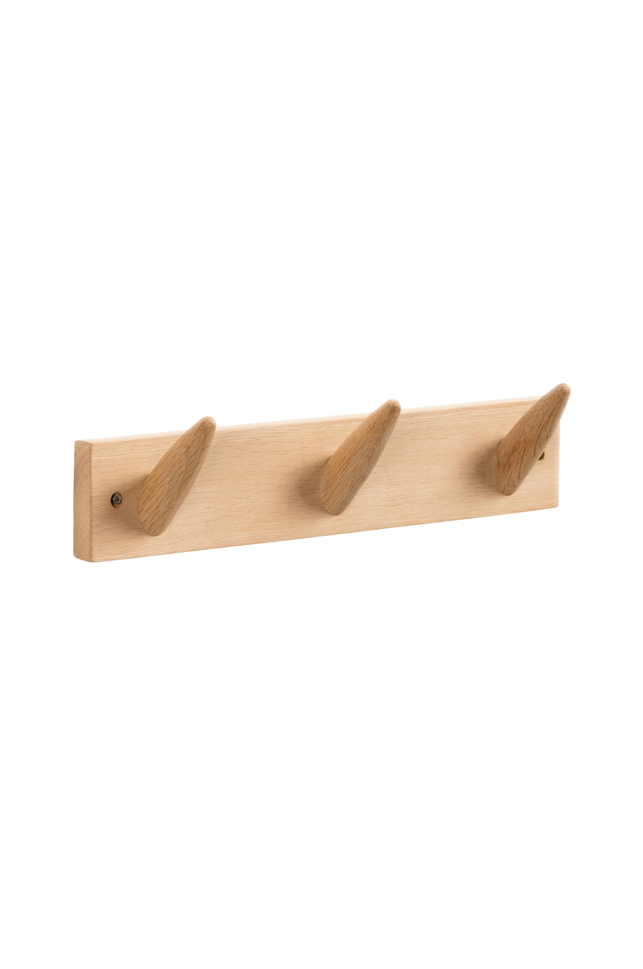 Natane klädhängare är vägghängd och tillverkad av massiv ek med vittvättad finish. Den har tre hängare. En oumbärlig klädhängare som välkomnar dig hem. Bredd 40 cm, djup 8,5 cm och höjd 10 cm.