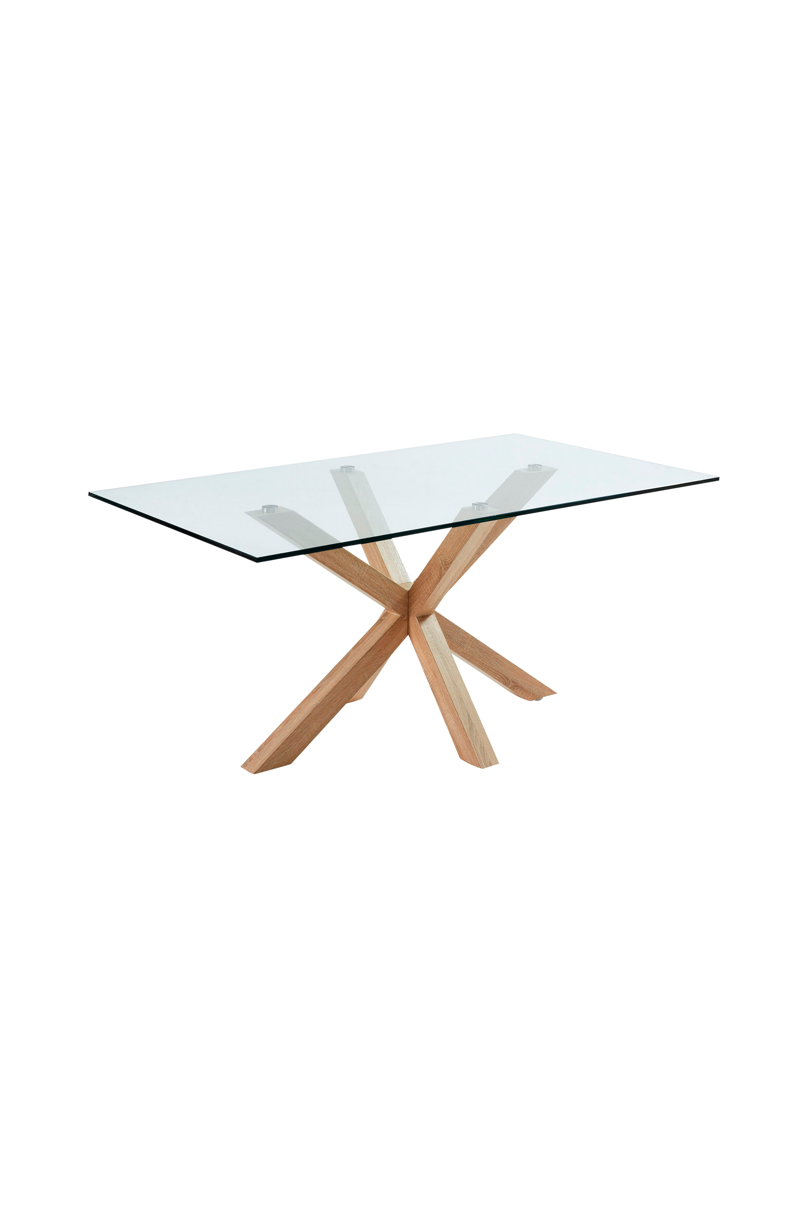 Detta bord i snygg design, med längd 180 cm, har en bordsskiva av glas och ben med träliknande ytfinish. Glasskivan är härdad, så den är mer tålig än normalt. Den hålls upp av en stomme med ben som ser ut att korsa varandra, en riktigt snygg design som är mycket stabil. Njut av denna vackra möbel som blir blickfånget i ditt vardagsrum. Bredd: 180 cm. Djup: 100 cm. Höjd: 75 cm.