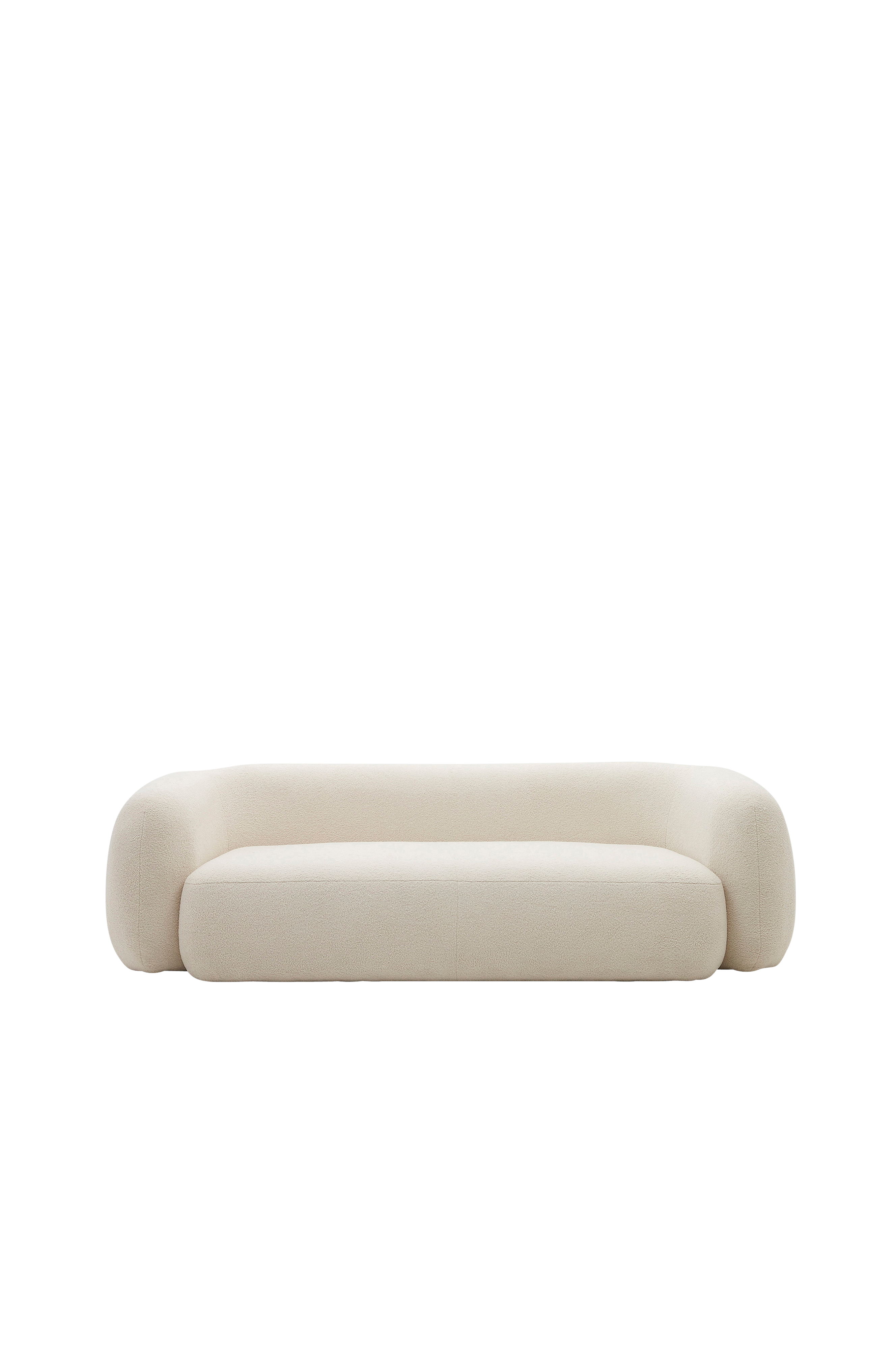 Kave Homes team har designat soffan Martina som ger avkoppling på ett sätt som värnar om planeten. Designen med rundade former och den fårskinnsliknande klädseln av 100% återvunnen polyester gör den till en perfekt möbel för vardagsrummet.