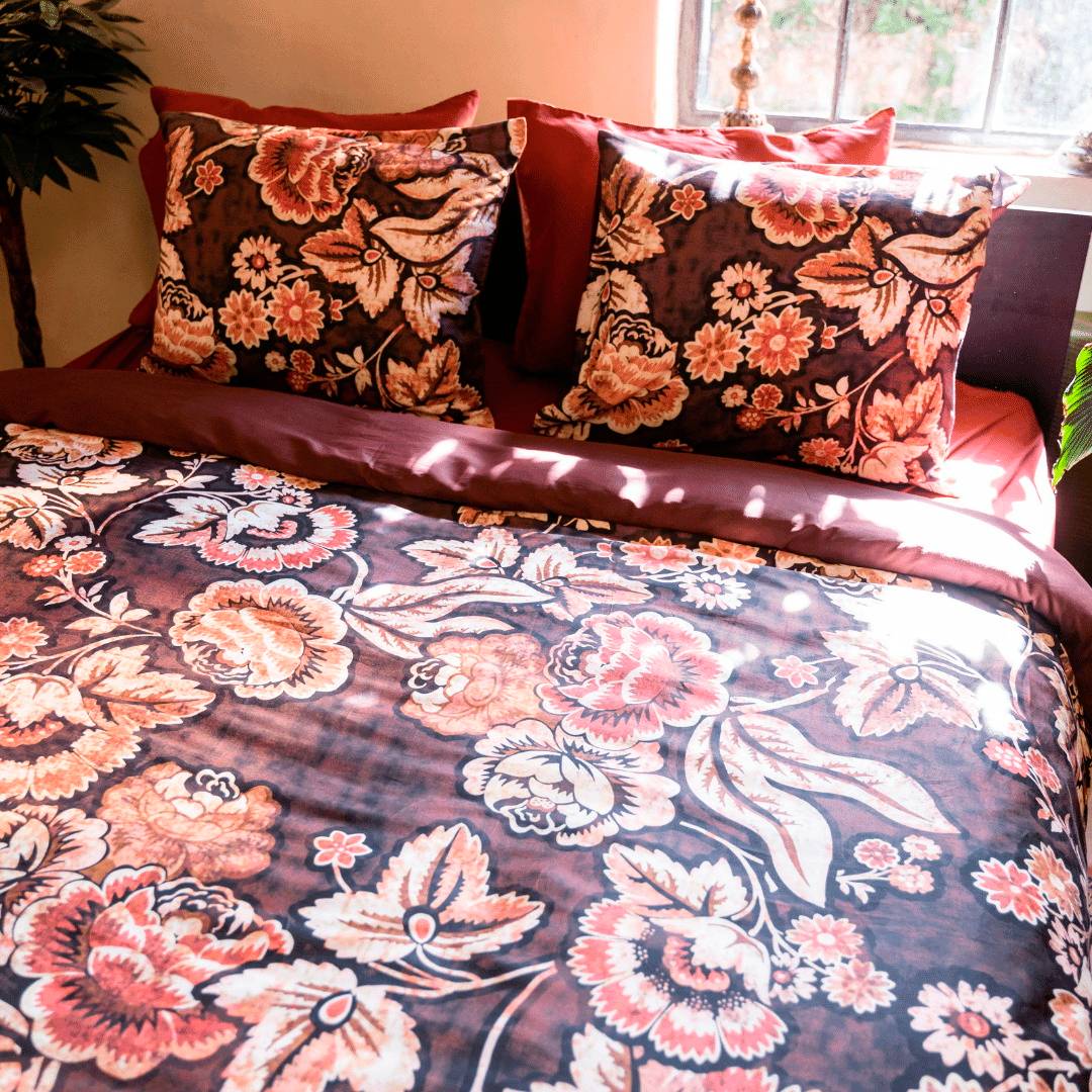 Påslakanet reza är en lyxig blommig design med vackra tropiska blommor. Bakgrunden har en grov blommig design full av subtila detaljer som ger designen djup. Ett blickfång för sovrummet! Baksidan av påslakanet är enfärgad. Påslakanet reza är tillverkat av 100% ren organisk bomullssatin, gots- cerifierat. Supermjukt, med en lyxig glans. Bäddset bestående av två örngott och ett påslakan med en trådtäthet på 200tc.