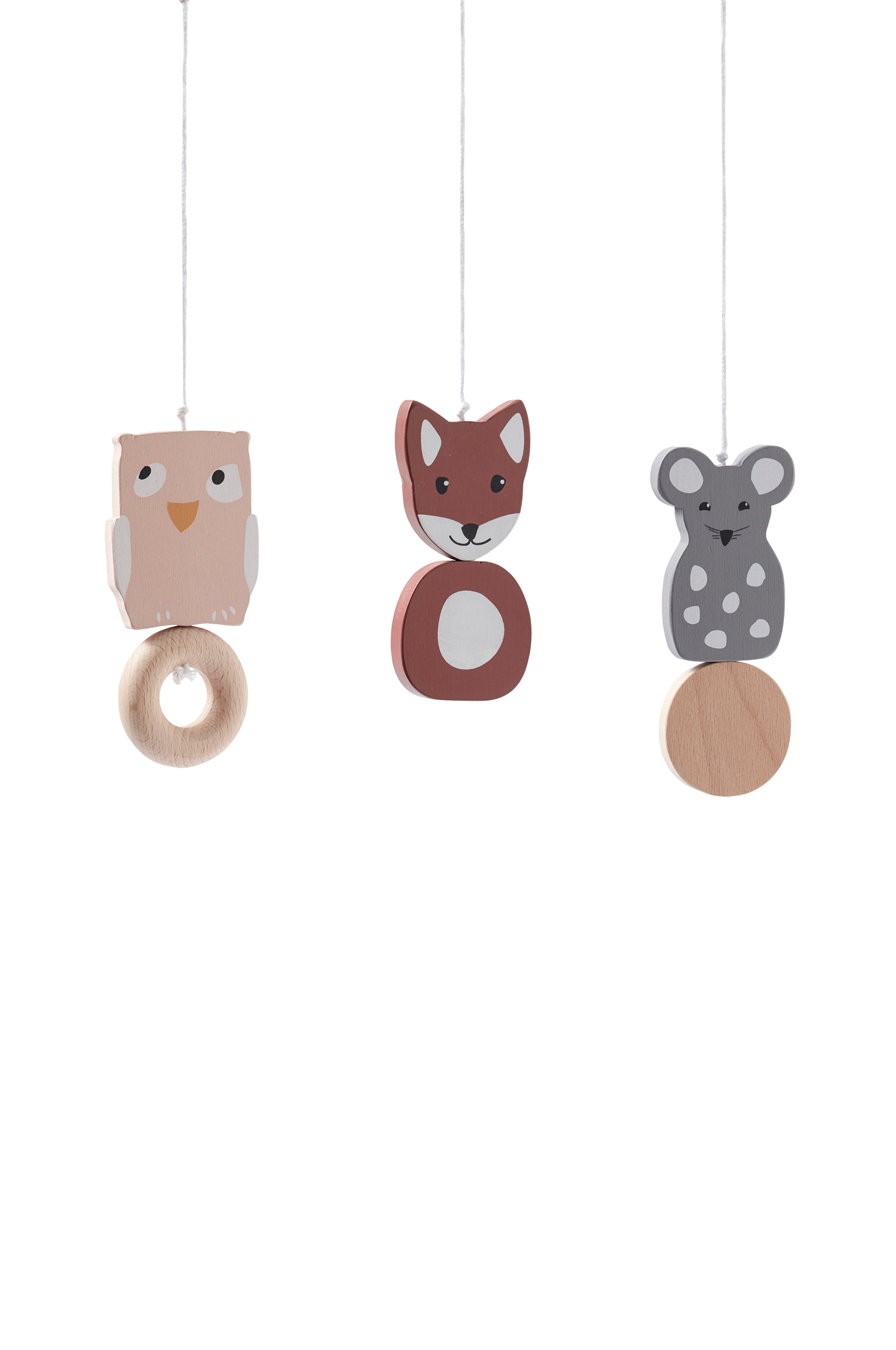 3 träfigurer i trä i EDVIN konceptet som passar till våra babygym. Räven Ed, ugglan Ola och musen Tor kommer att underhålla din baby. Figurerna är gjorda i massiv bok och målade med vattenbaserad färg. Använd medföljande snören för att fästa i babygymmet.