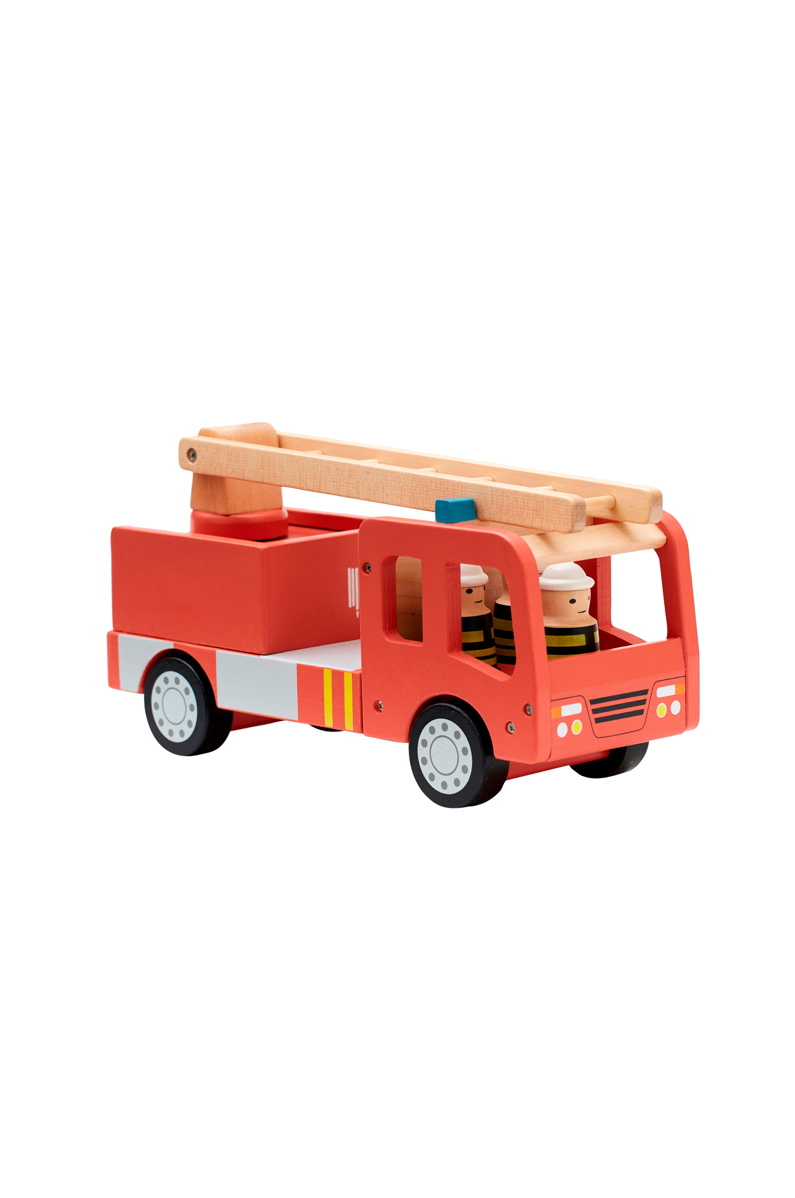 Brandbil i FSC certifierat trä. Bli en hjälte och hjälp de tre brandmännen Sam Pat och Jim att köra runt och släcka elden om olyckan är framme. Håll utkik och var beredd.