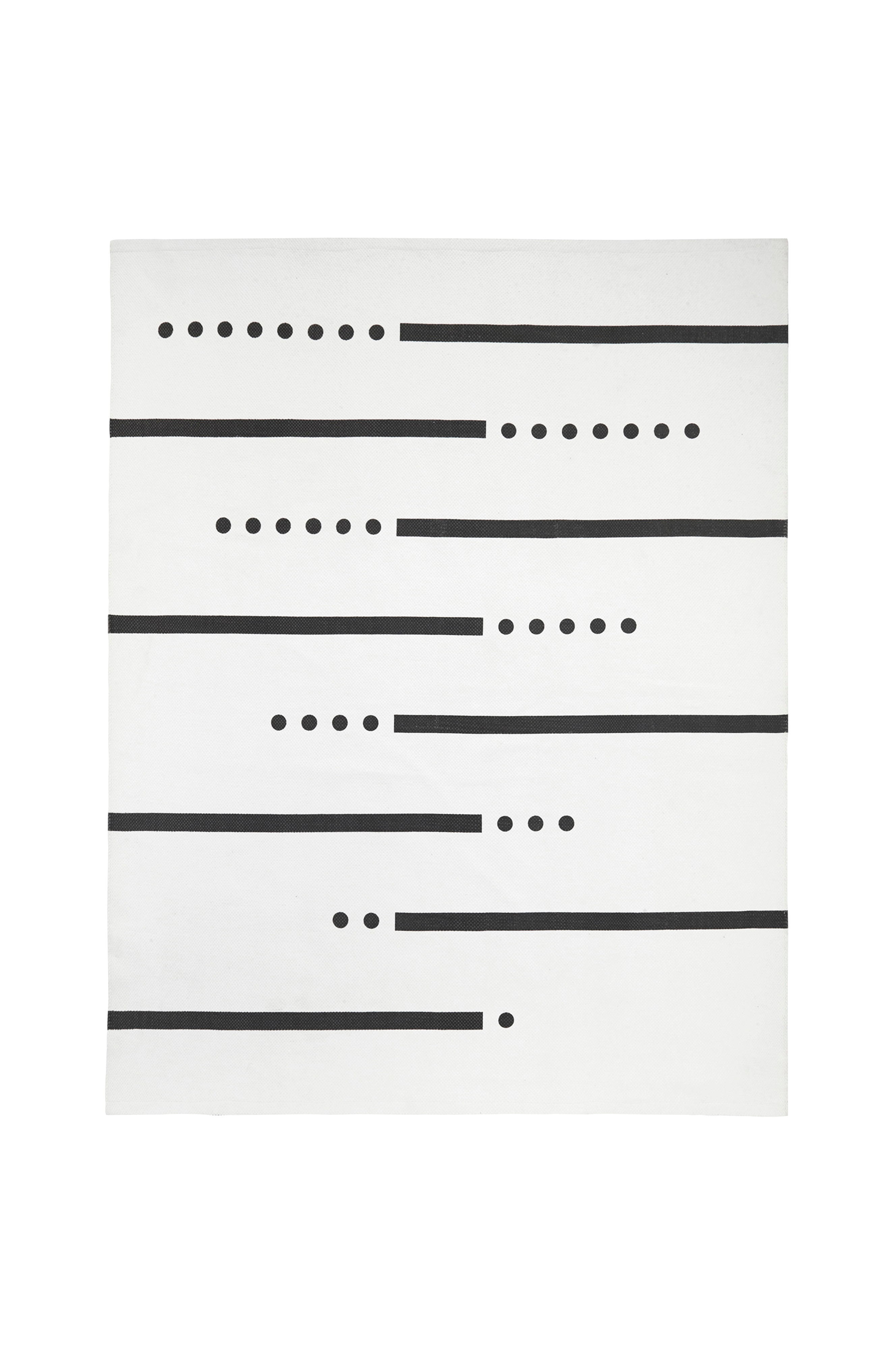 Prickarna och linjerna skapar mönster som stimulerar till lek. Hitta lekfulla mönster och använd prickarna för att träna på att räkna. Om du tittar riktigt noga ser du att det är olika antal prickar att räkna från ett till åtta. Nästa dag kan mattan förvandlas till något annat.