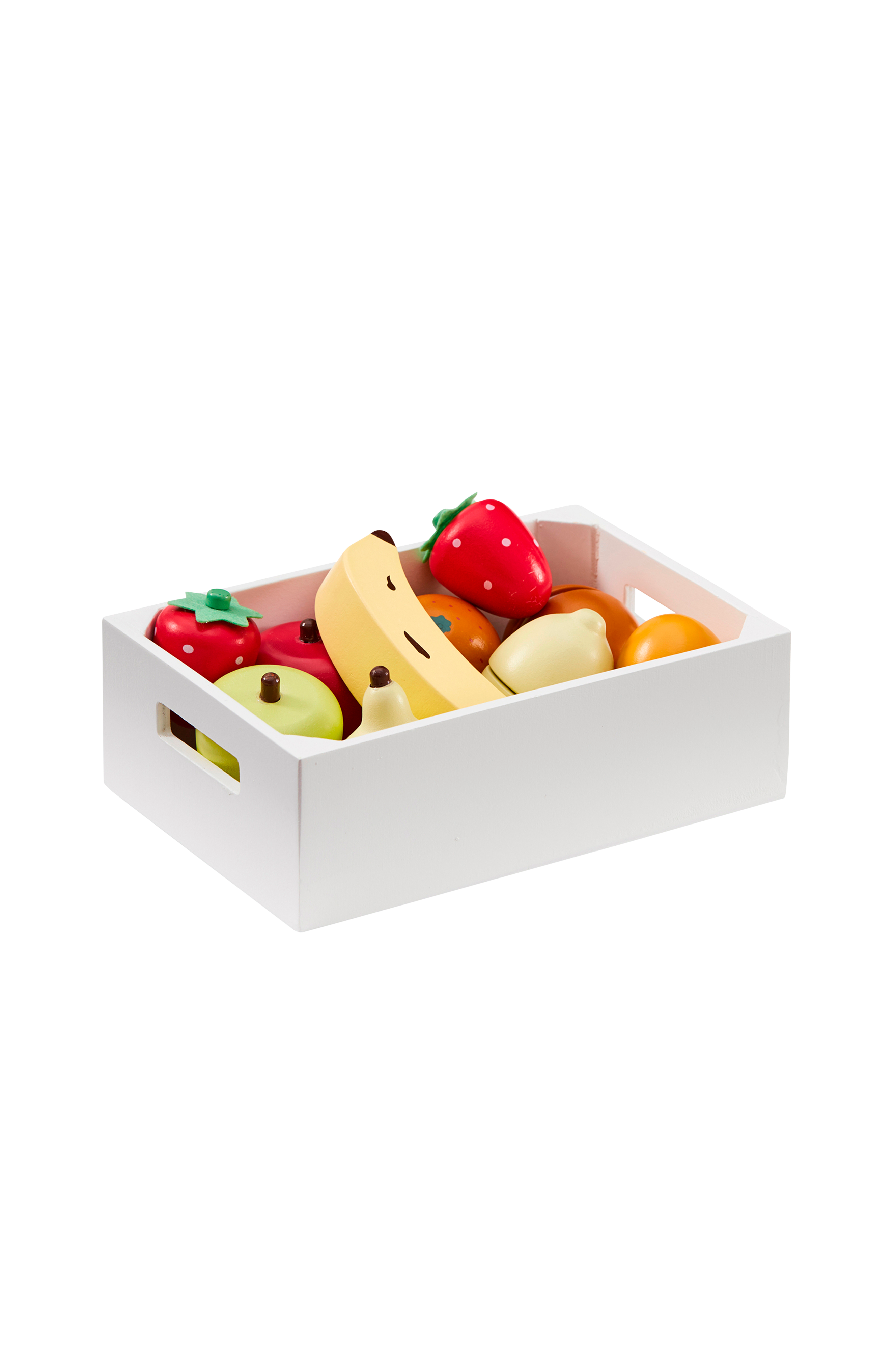 Innehåller banan, citron, äpple, päron och apelsiner. Citronen kan delas och sättas ihop igen med kardborrefästen.