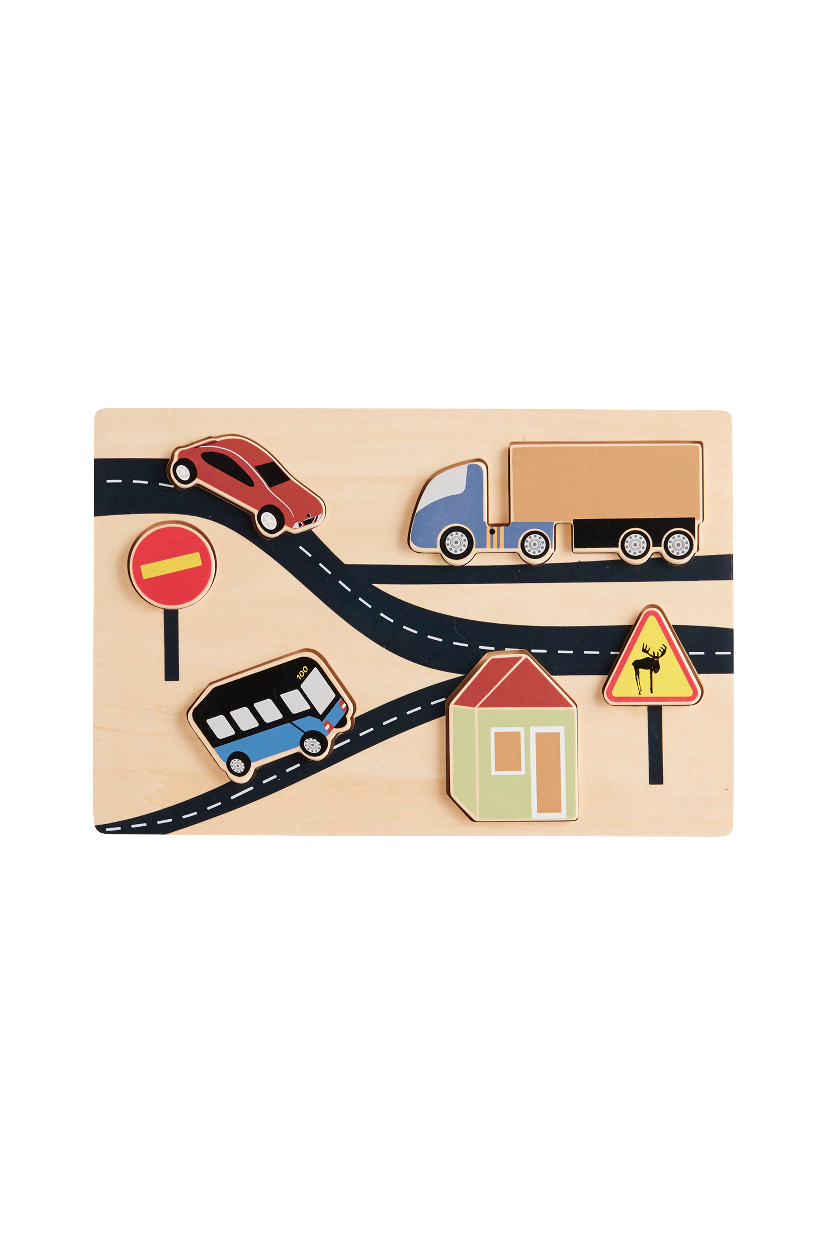 Ett pussel med 6 delar i plywood och bok. Bra sätt att träna på trafikregler- och situationer redan i tidig ålder. Utvecklar koordination mellan hand och öga. Ger våra allra minsta goda chanser att bli riktigt duktiga problemlösare!