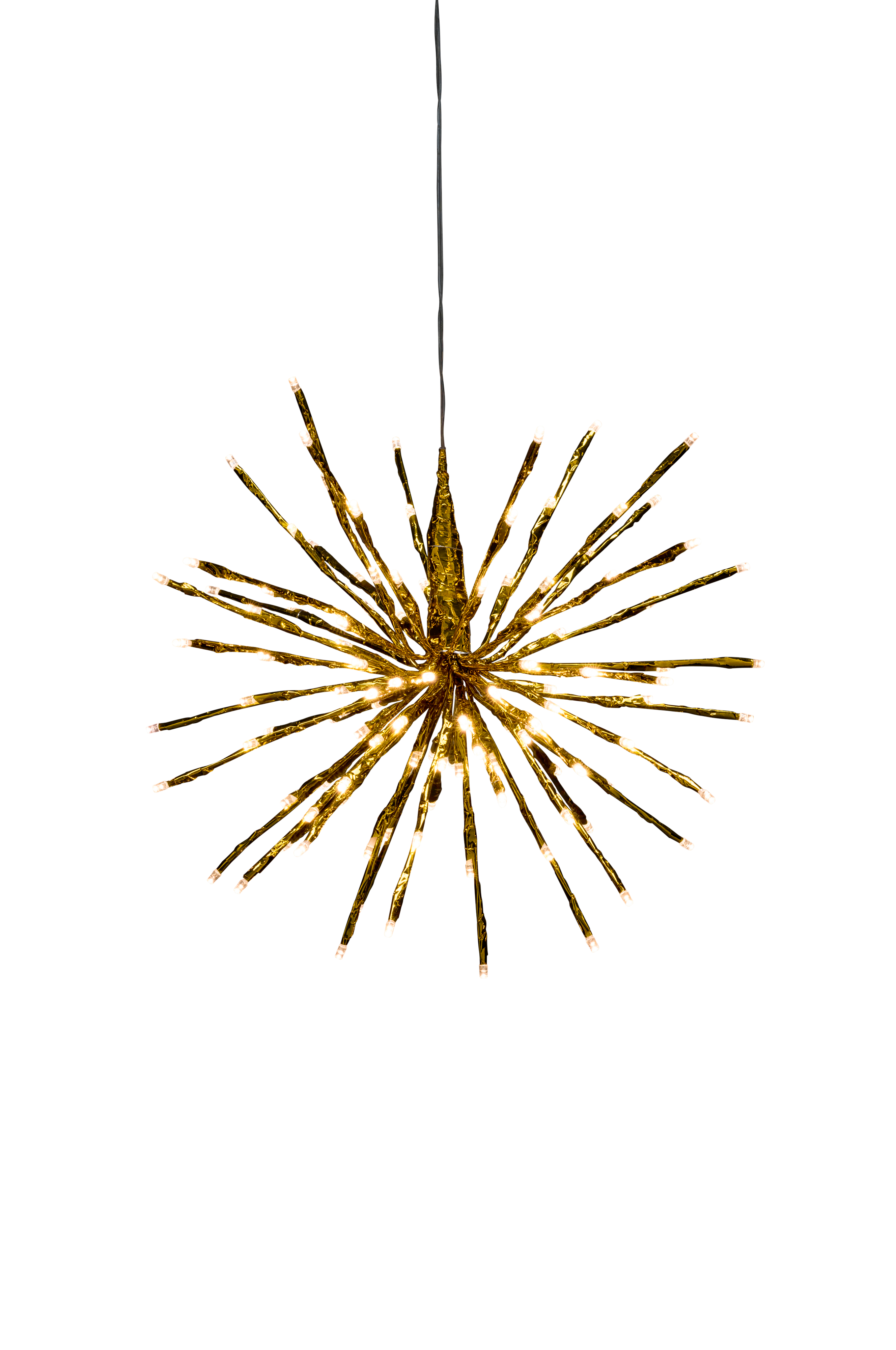 Dekorationsboll spröt med 120 varmvita LED. Drivs med en 36V transformator. Anslutningssladden är 5 meter. Diameter 40cm. IP44.