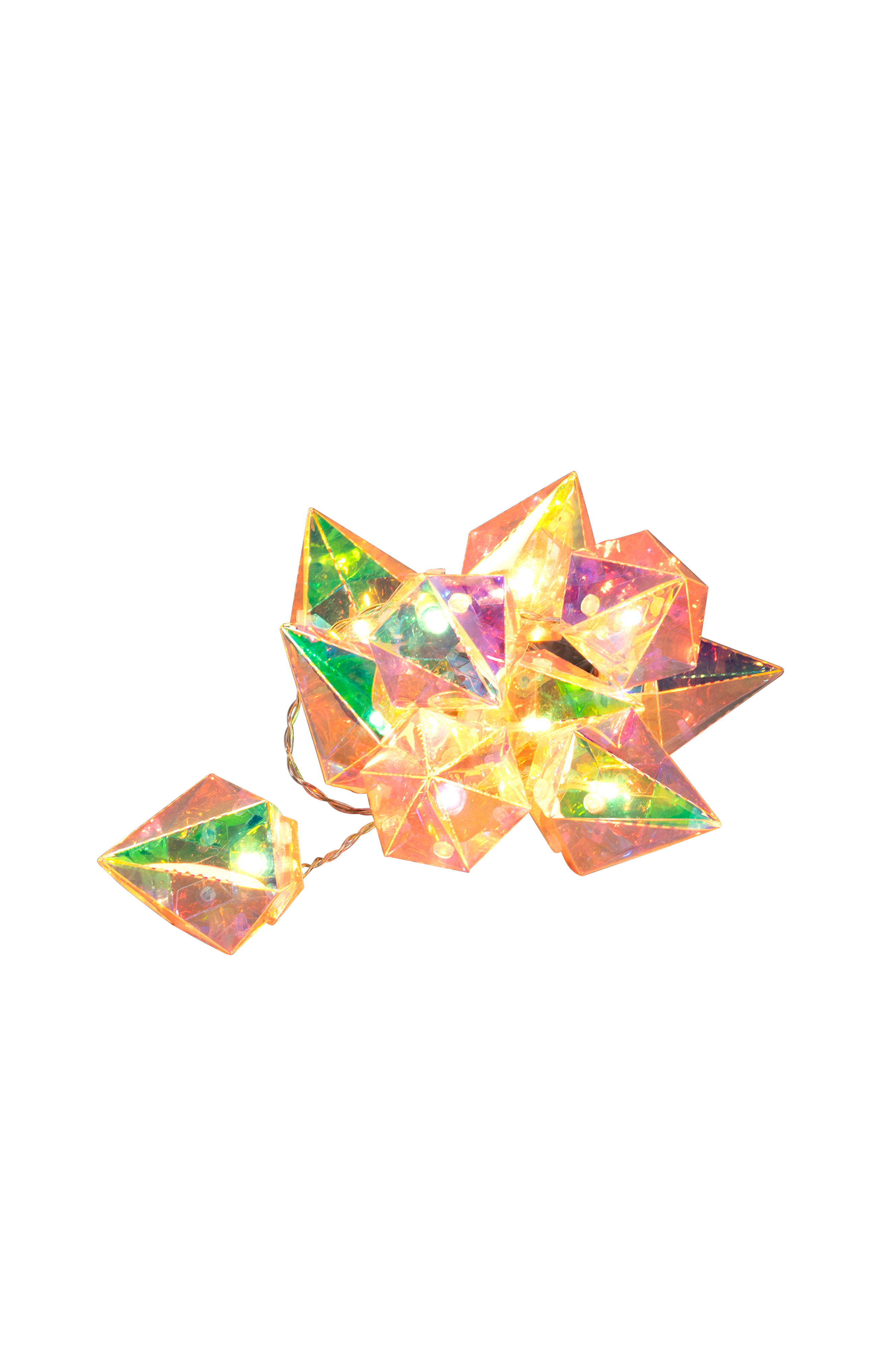 Ge ditt hem en gnistrande touch av lyx med denna batteridrivna ljusslinga med 10 led-lampor. De unika prismaformade glödlamporna skapar ett vackert, skimrande sken som utstrålar en exklusiv diamantliknande effekt - perfekt för att förhöja stämningen vid festliga dukningar eller som elegant inredning. Med en praktisk timerfunktion och batteridrift är det lätt att placera var som helst utan att behöva krångla med sladdar.