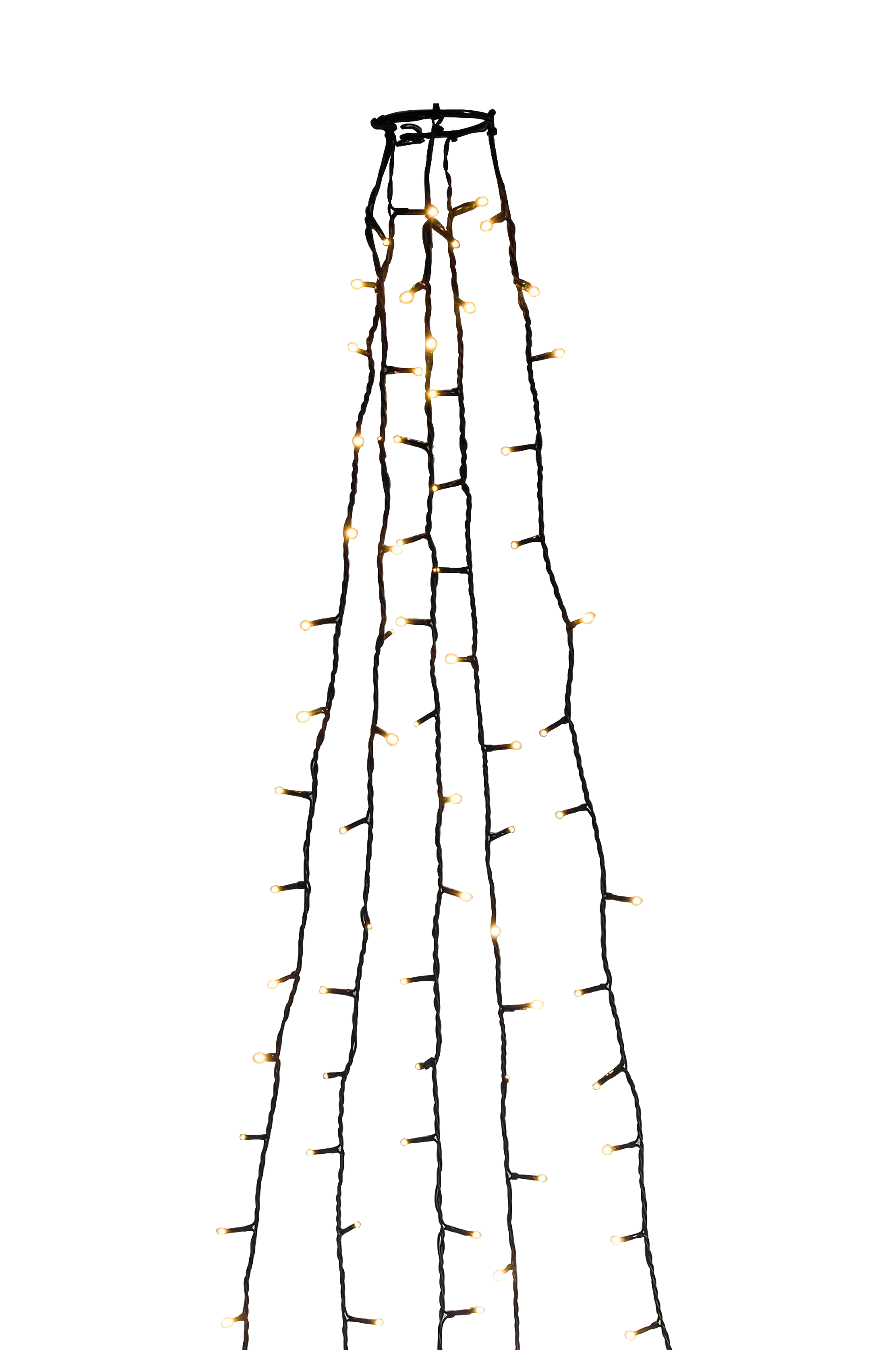 Julgransbelysning med 5x40 bärnstensfärgade lysdioder. Designad för att draperas över trädets topp för att fördela ljusen jämnt. Den mörkgröna kabeln är 240 cm hög med en 500 cm lång anslutningskabel. Drivs av en 24v transformator. Endast för inomhusbruk.