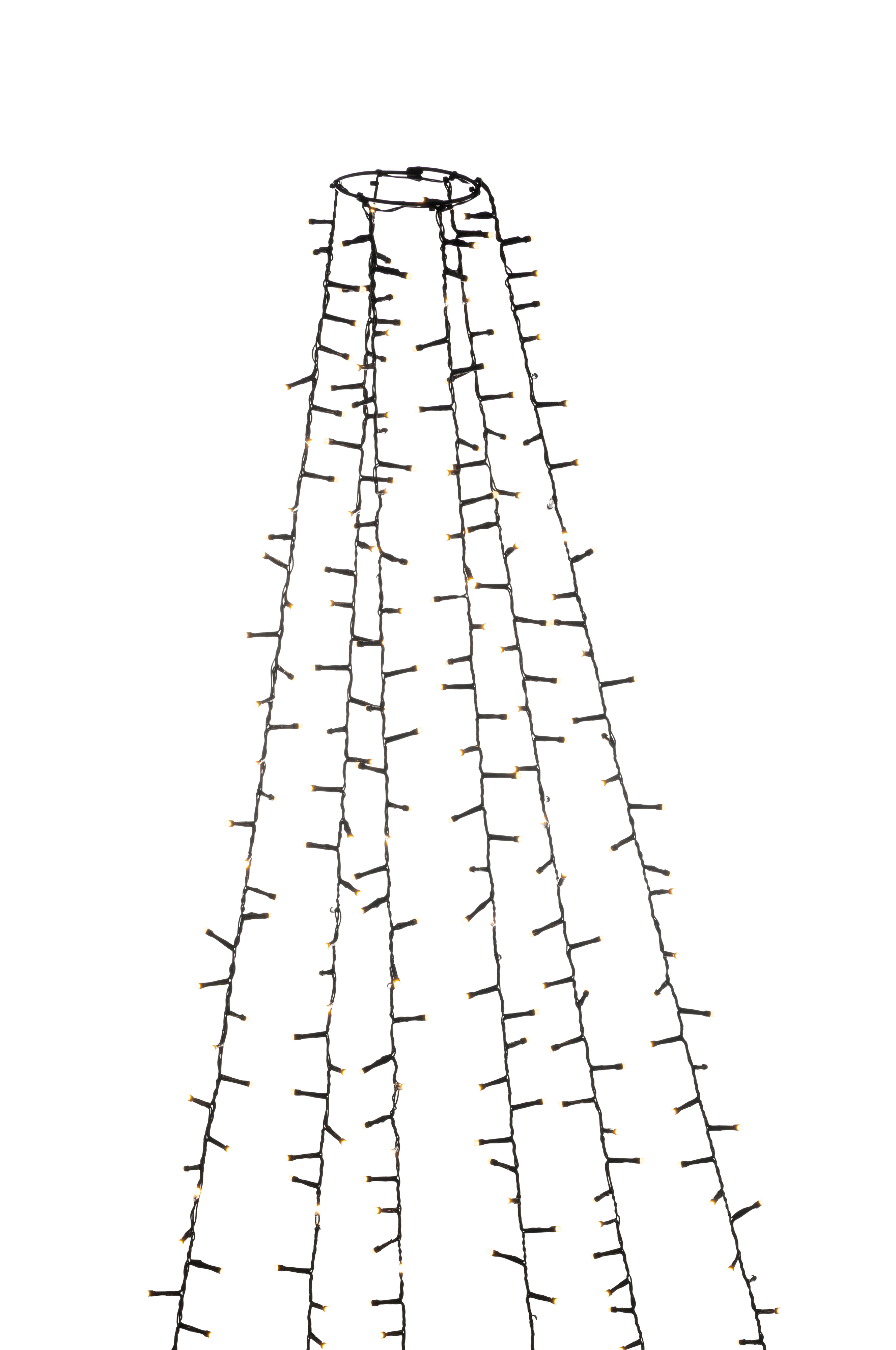 Ljusslinga för julgranskluster med 6x110 varmvita lysdioder. Draperas över toppen av granen för att fördela ljuset jämnt. Kabeln är svart och 240 cm hög med en 500 cm lång anslutningskabel. Drivs av en 24v transformator med inbyggd 8-timmars timer. Godkänd för utomhusbruk