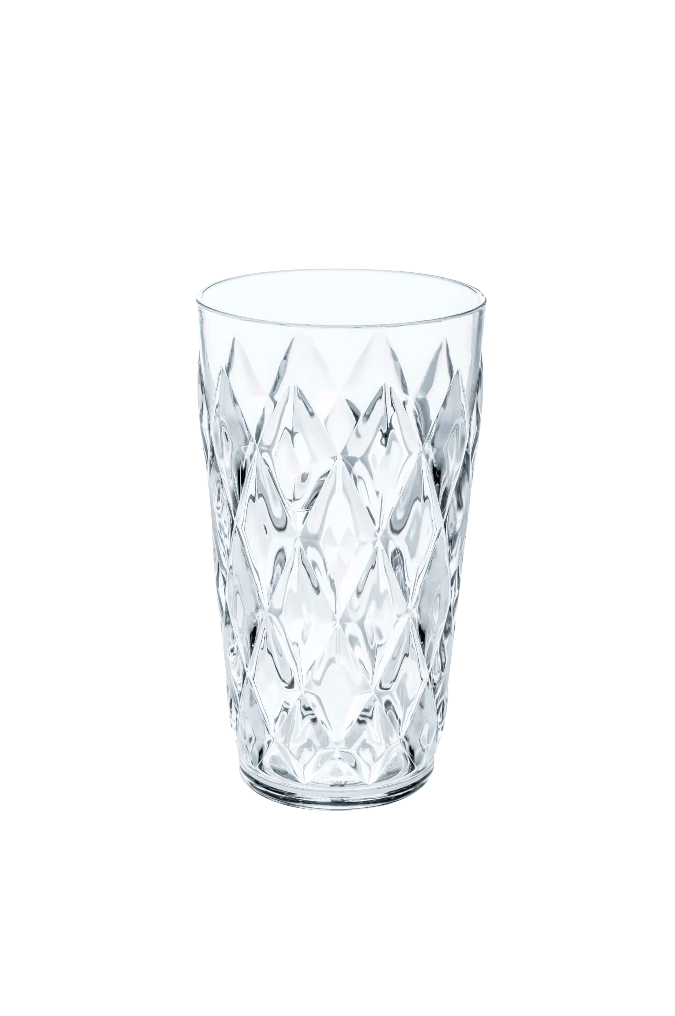 från koziol kommer serien crystal, som med sin tåliga plast klarar av vilken tillställning som helst. Crystal small har en facetterad yta som gör detta till ett glittrande vackert glas, samtidigt som det blir mycket skönt att hålla i. Glaset har isolerande egenskaper som gör att du kan njuta av både heta och iskalla drycker under lång tid.