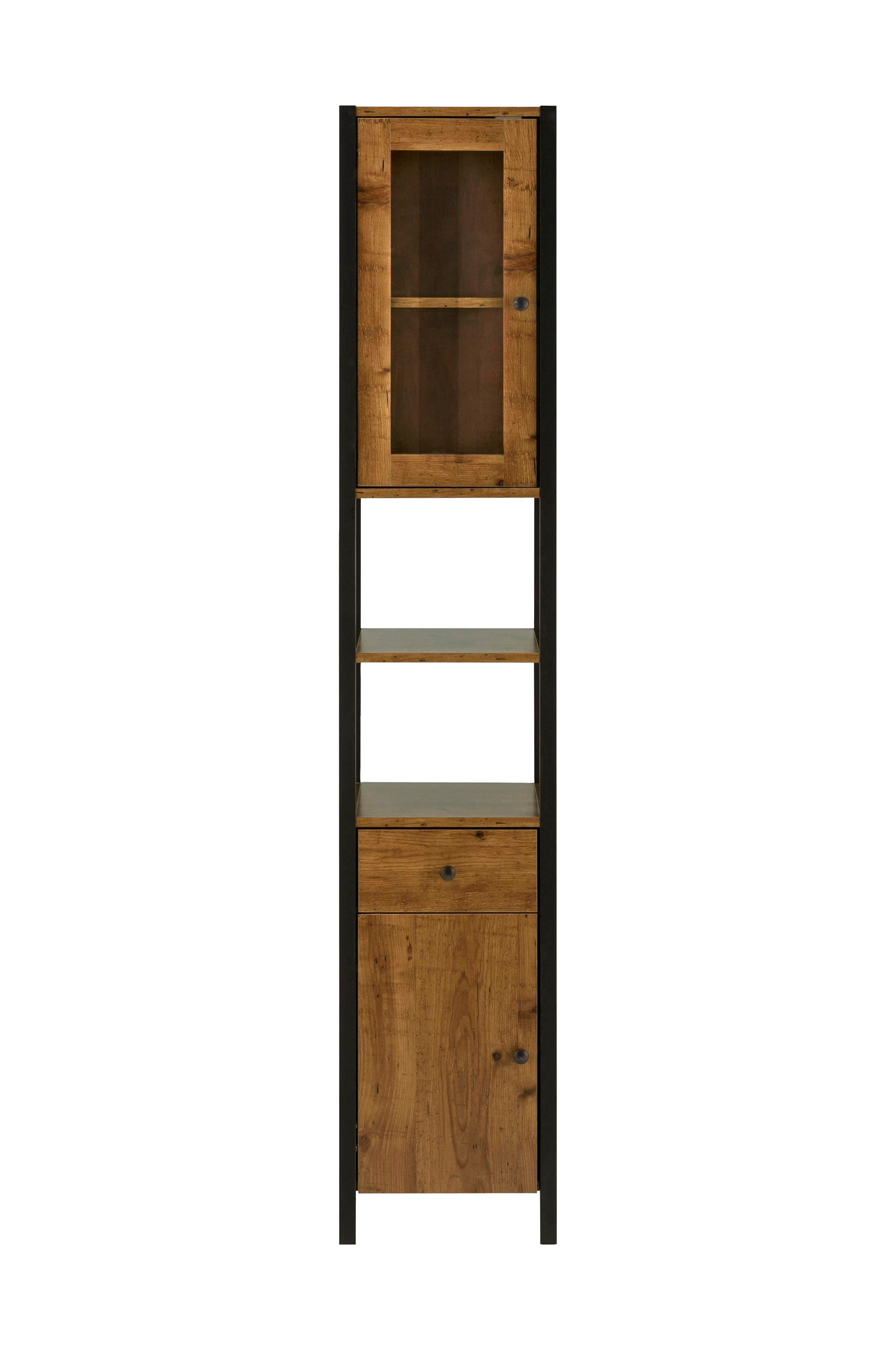 Badrumsskåp Chris, Ek från Stillahavsområdet/Svart stomme, 33 x 35 x 180 cm