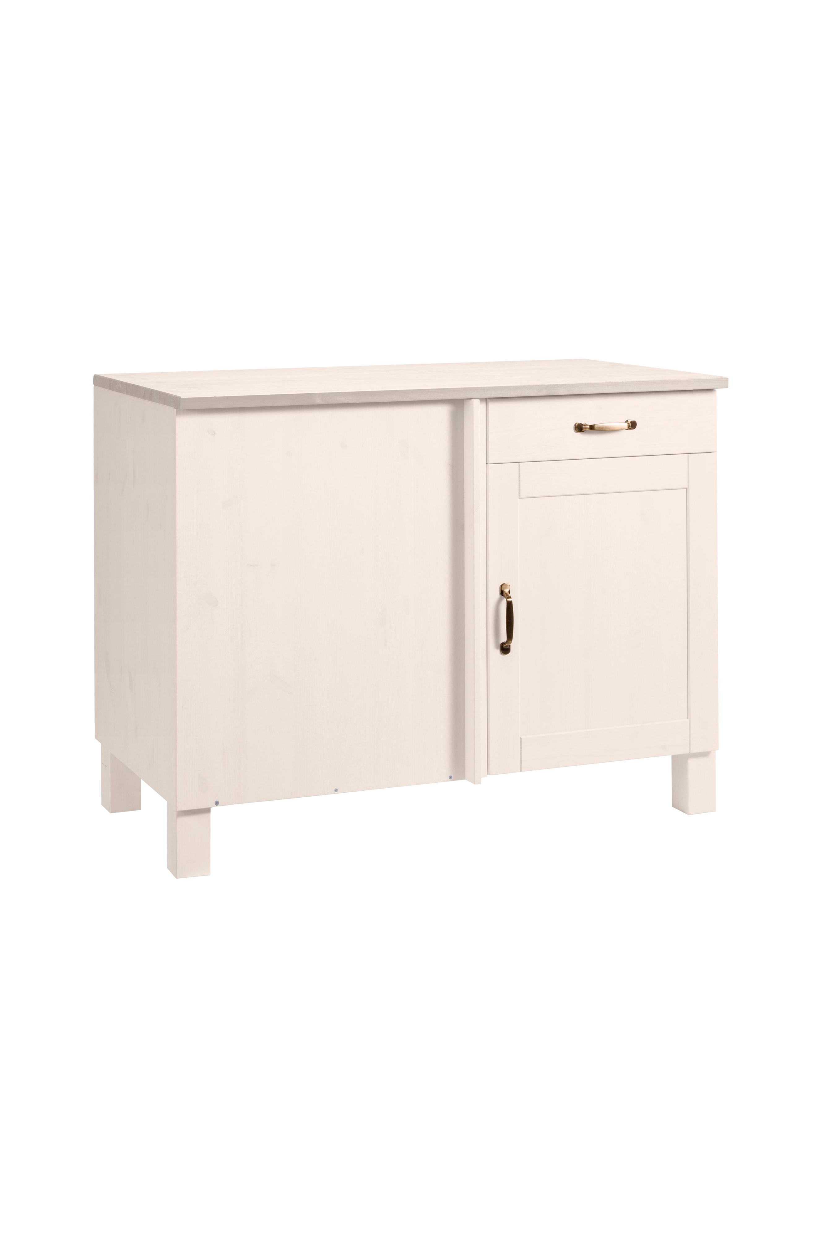 Med hörnunderskåpet kommer modern lantlig chic in i köket. Fronten, stommen och bänkskivan på det högkvalitativa köksskåpet är tillverkade av massiv furu. Fsc-certifieringen garanterar en absolut miljövänlig produktion. Köksunderskåpet kan också kombineras mycket bra med andra stilar på grund av de olika färgkombinationerna. Det finns också möjlighet att kombinera skåpet med andra element från serien. Det kompletta köksblocket kan också beställas som en sparuppsättning. Den robusta bänkskivan är lätt att rengöra, lådan på metallskenor och skåpsdörren har attraktiva metallhandtag. Detta gör hörnunderskåpet till en underbar och samtidigt praktisk hörnlösning med lantlig look.