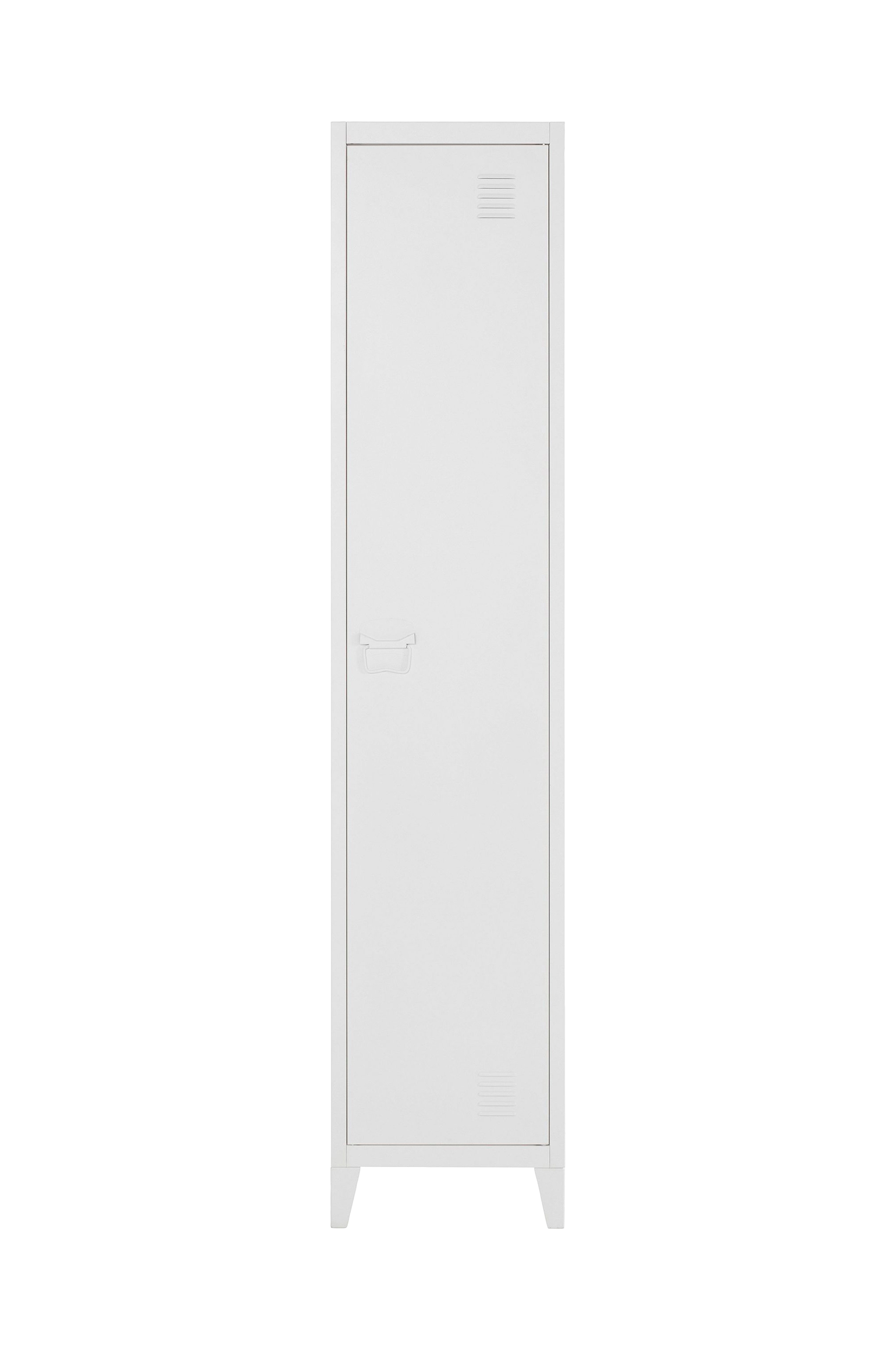 Detta högskåp ger en minimalistisk inredningsdetalj. Den avskalade designen i skandinavisk stil passar många inredningsstilar och smälter sömlöst in i befintliga möbler. Skåpet är tillverkat av metall. Det kan användas på många olika sätt, inte bara i arbetsrummet, vardagsrummet eller sovrummet, utan även i hallen och korridoren. Det erbjuder tillräckligt med utrymme för böcker, kläder och andra saker på flera hyllor bakom dörren. Kan låsas vid behov.
