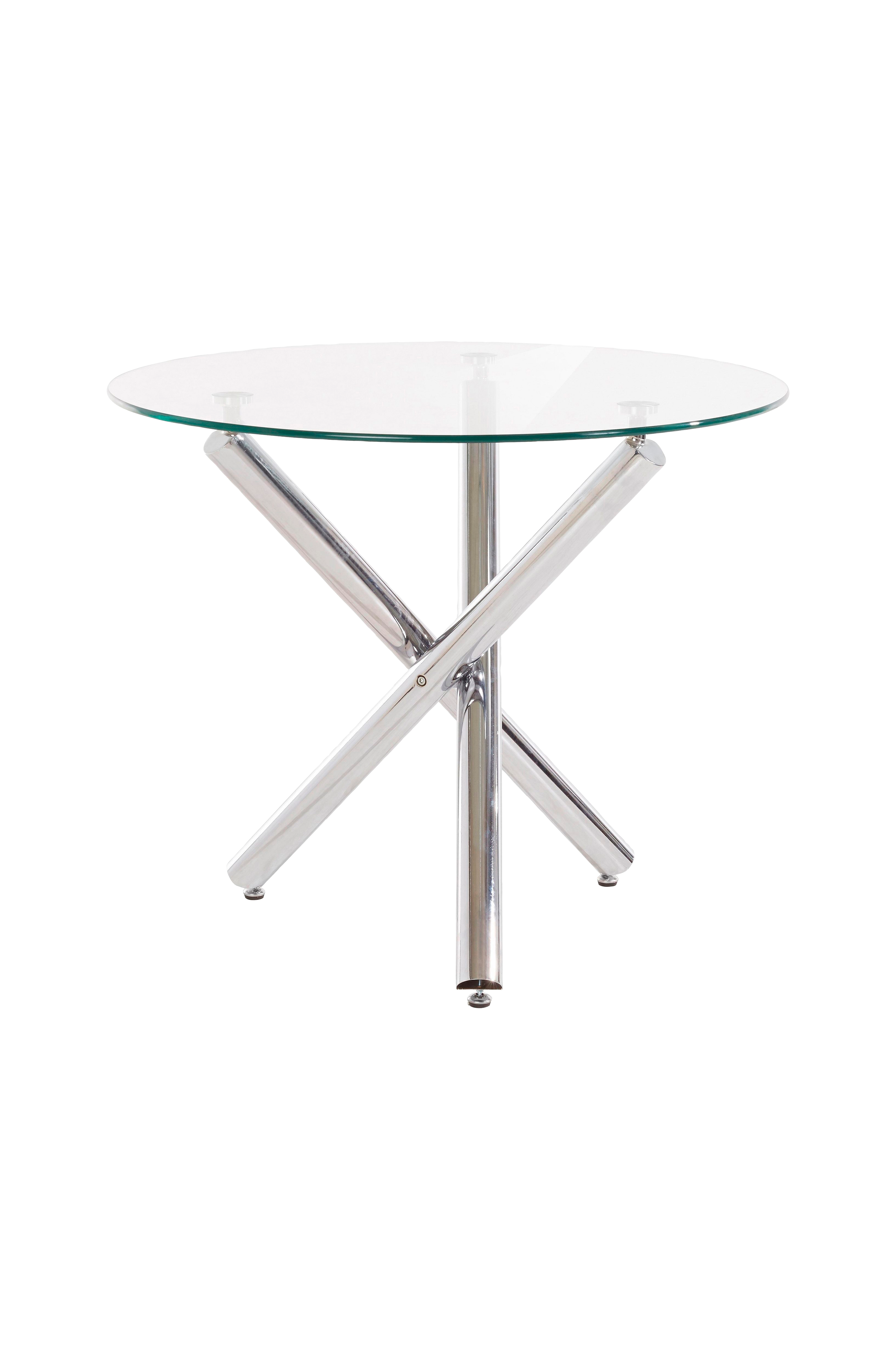 Det moderna matbordet drar till sig allas uppmärksamhet med sin eleganta och rena design. Tydliga linjer finns i bordsbenen i metall och den runda glasskivan. Det lättskötta bordet är modernt och ändå tidlöst och passar in i nästan alla rum, även där det inte finns så mycket plats för ett matbord.