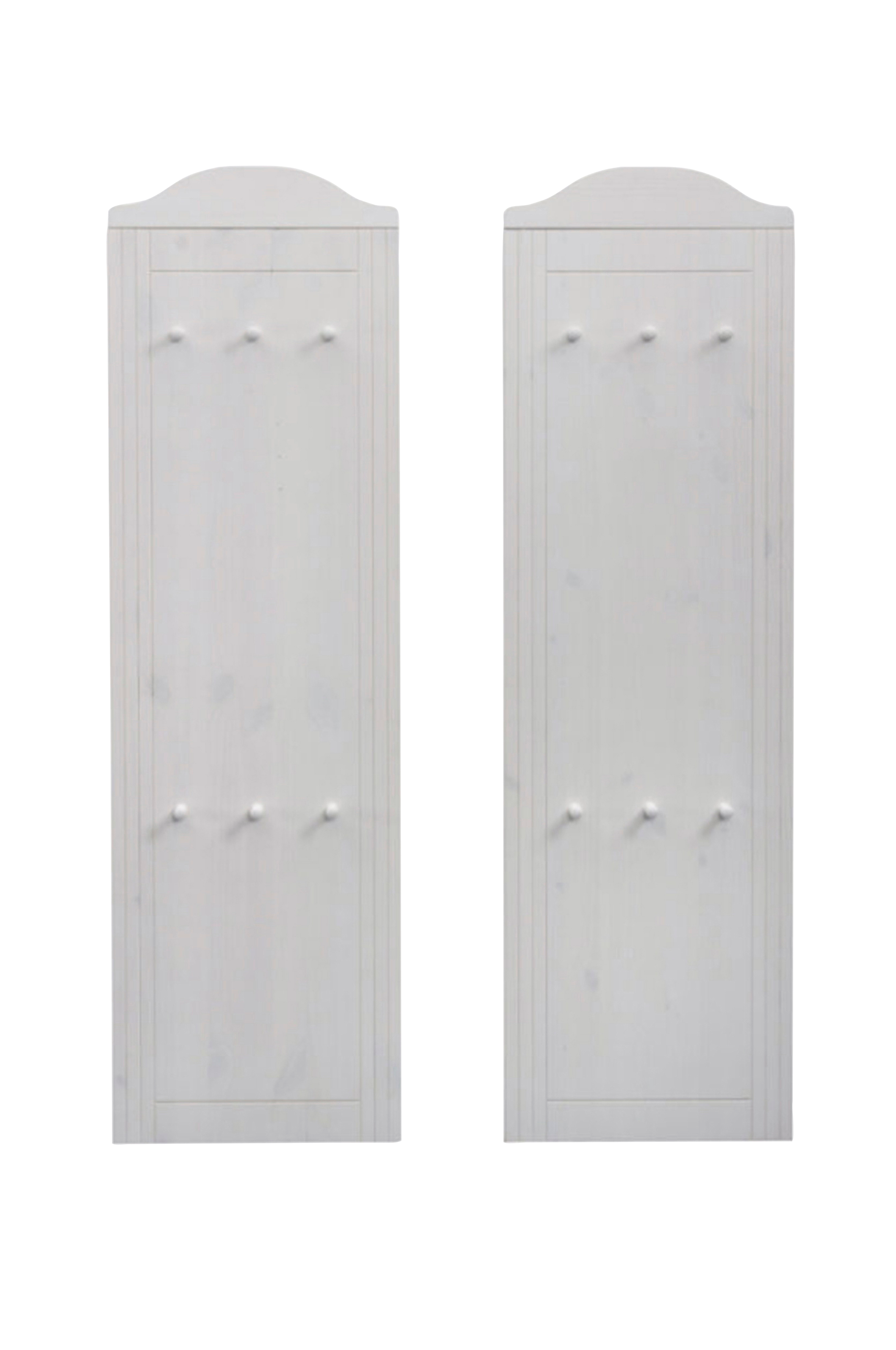 Praktiskt blickfång: denna fantastiska klädhängare i lantlig stil förfinar varje entré. Den klassiska designen med dekorativa fräsningar och den övre, böjda ytan ger en harmonisk och exklusiv atmosfär. Denna attraktiva garderobspanel finns i en praktisk uppsättning om 2. De funktionellt arrangerade, välformade träklädkrokarna erbjuder gott om utrymme för rockar, jackor och andra vardagliga föremål. Väggpanelen är helt tillverkad av högkvalitativ, massiv furu, som kommer från hållbara, fsc-certifierade odlingar. Den finns i olika, matchande färger. Denna vackra garderob i lantlig stil ger varje hall en elegant atmosfär och sätter attraktiva visuella accenter.